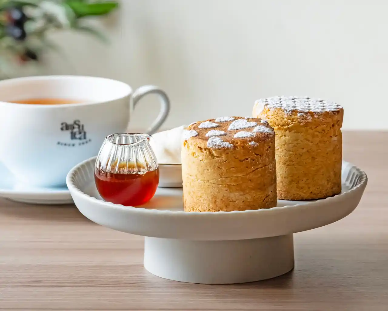amsuteaの高品質なアールグレイの上品な香りが、スコーンの素朴な旨味を優しく包み込み、優雅な余韻を演出します。 |