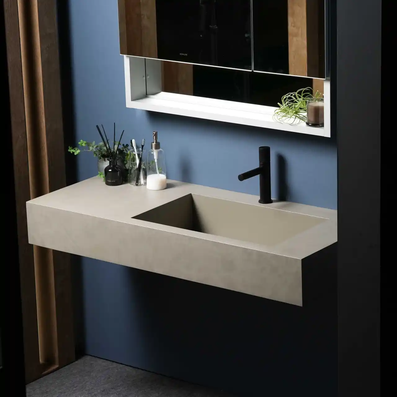 モルタル調の一体感ある洗面提案 |