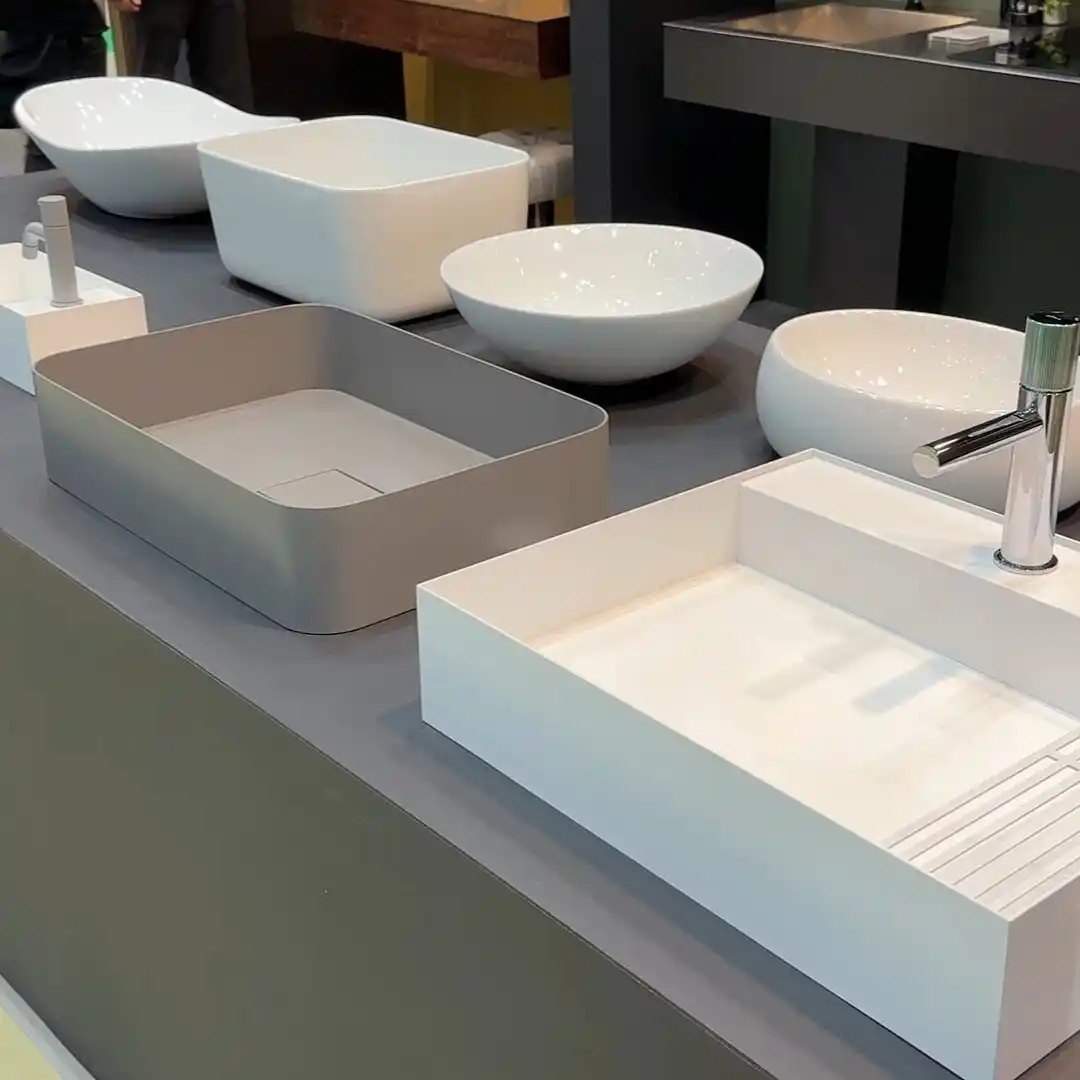 デザイン洗面ボウル:iFデザイン賞受賞の『ヌアール』、グッドデザイン賞受賞の『リニエッタ』をはじめ、角型・丸型など多彩なラインアップを展示しました。 |