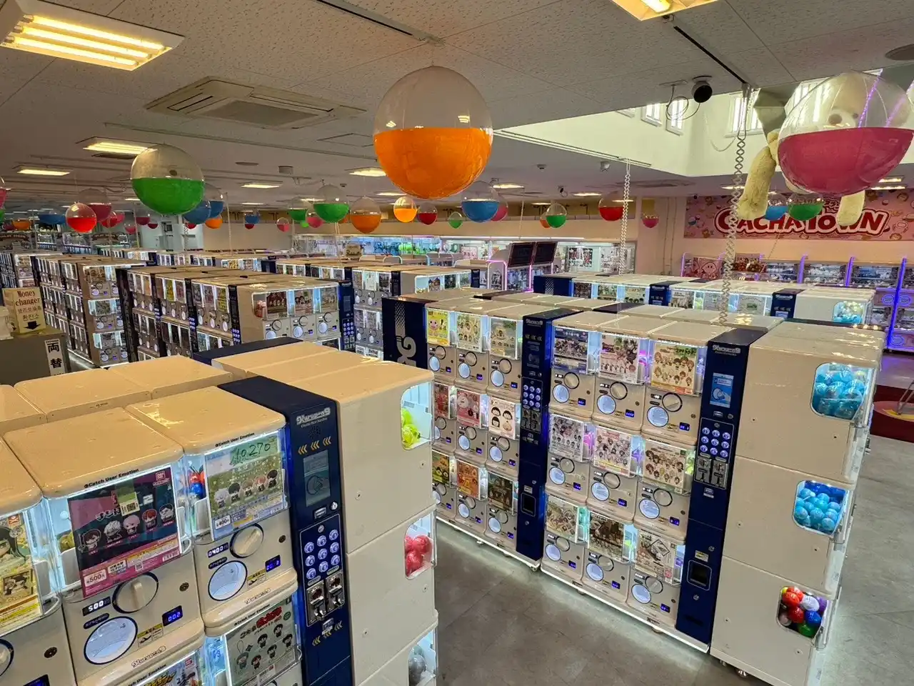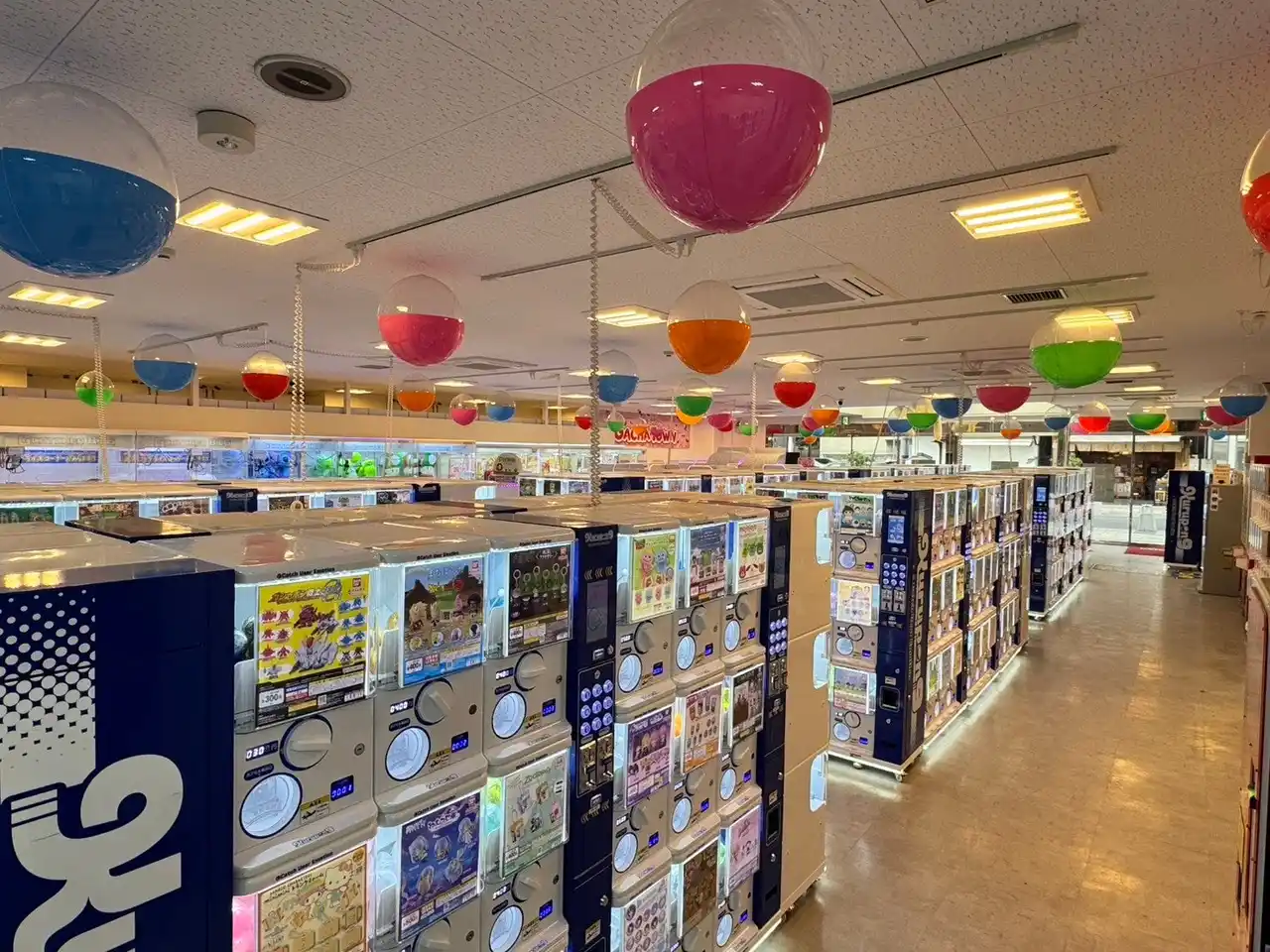カプセルトイは当社製品のクルポン9を70台設置。1Fだけではなく3Fにもカプセルトイあります!3Fはキャッシュレス決済専用の「ミライ」型カプセルトイコーナーです! |