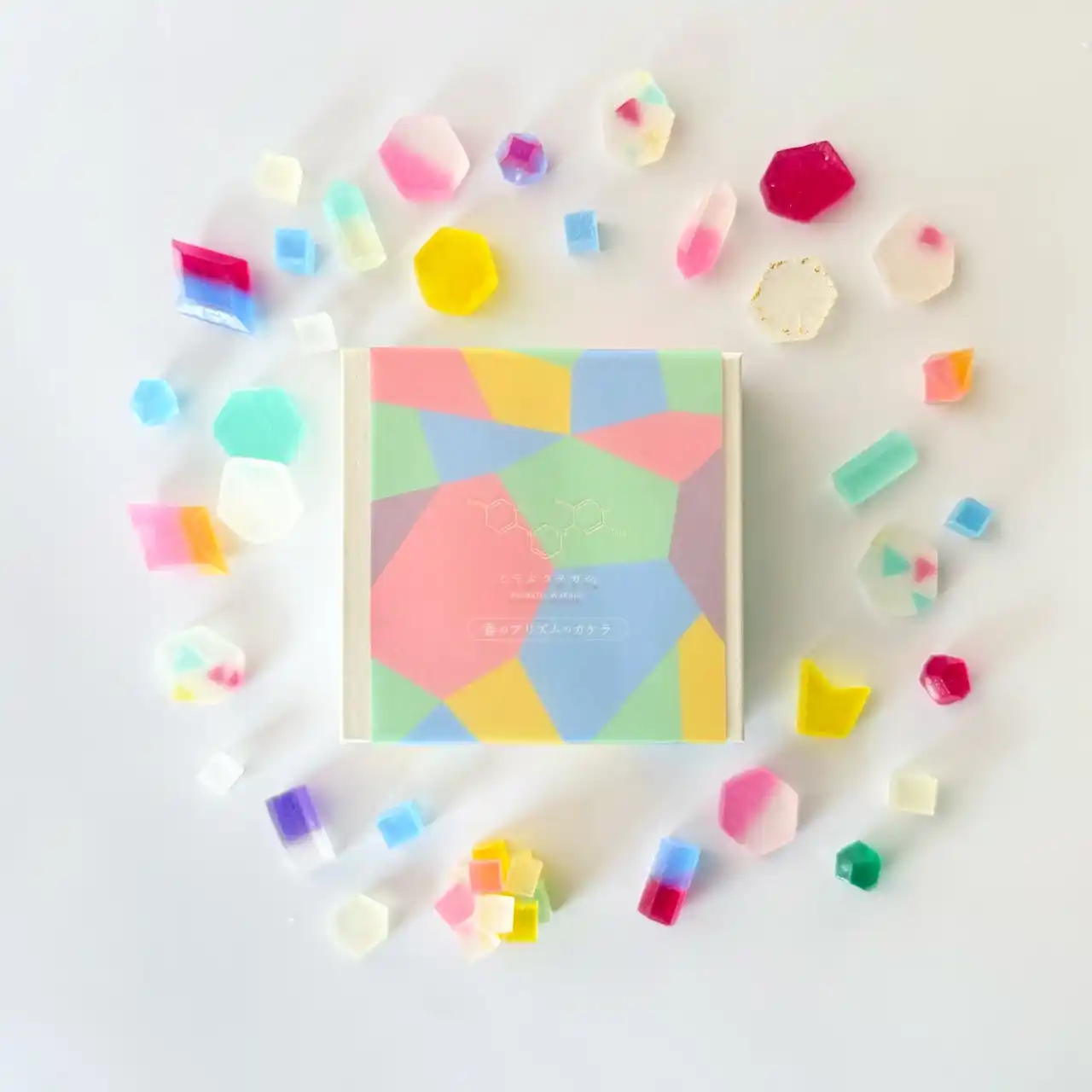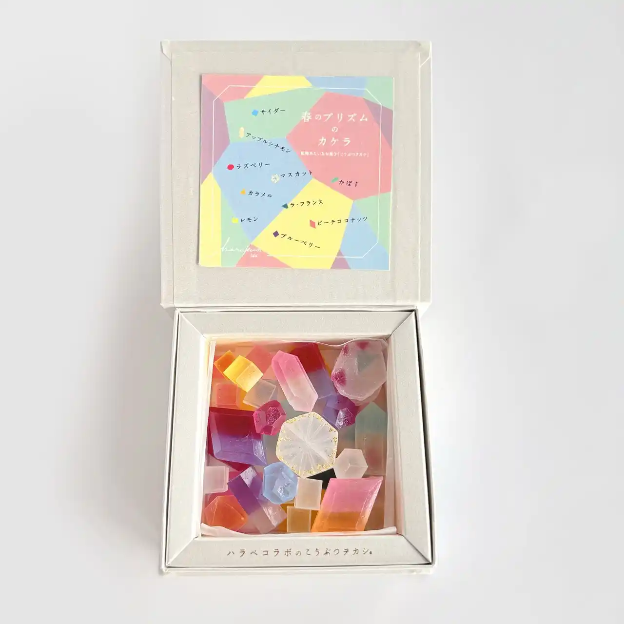 「ArtなFoodであそぶ」をテーマにプロダクトを展開するメルティングポットハラペコラボ株式会社(所在地:福岡県福岡市、以下 ハラペコラボ)から、宝石や鉱物のような琥珀糖で人気の「こうぶつヲカシ」シリーズより、春限定商品「春のプリズムのカケラ」を発売いたします。2026年3月13日より、公式オンラインストアにて販売を開始します。箱を開けると、色とりどりの琥珀糖が並び、まるでプリズムからこぼれた光のカケラのような世界が広がります。SNSでも人気の“宝石のようなお菓子”として、ギフトや自分へのご褒美スイーツとしてもお楽しみいただけます。 |
