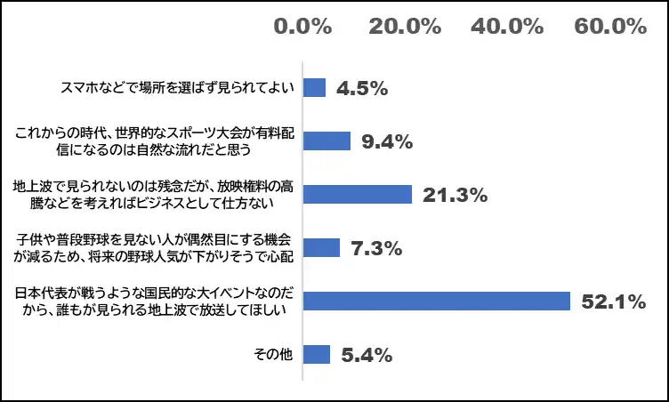 「Netflixで全試合観られるのは利便性が高いが、野球界の未来を考えると地上波の露出は不可欠だと思う。」(20代・男性) |