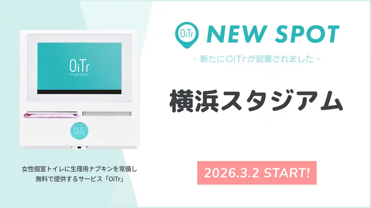 全国の商業施設や交通機関、公共施設、オフィス、学校などの女性個室トイレに、生理用ナプキンを常備し、無料で提供する日本初*のサービス「OiTr(オイテル)」を展開するオイテル株式会社(本社:東京都新宿区、代表取締役:崎山 真)は、「トイレットペーパーのように、個室トイレに生理用品が行き届く社会」の実現を目指し、新たに「横浜スタジアム(神奈川県横浜市)」にOiTrを設置し、プロ野球の試合をはじめスポーツ観戦や各種イベントで多くの来場者が訪れる場における安心・快適な環境づくりを後押しするとともに、2026年3月2日よりサービスを開始しましたことをお知らせいたします。 |