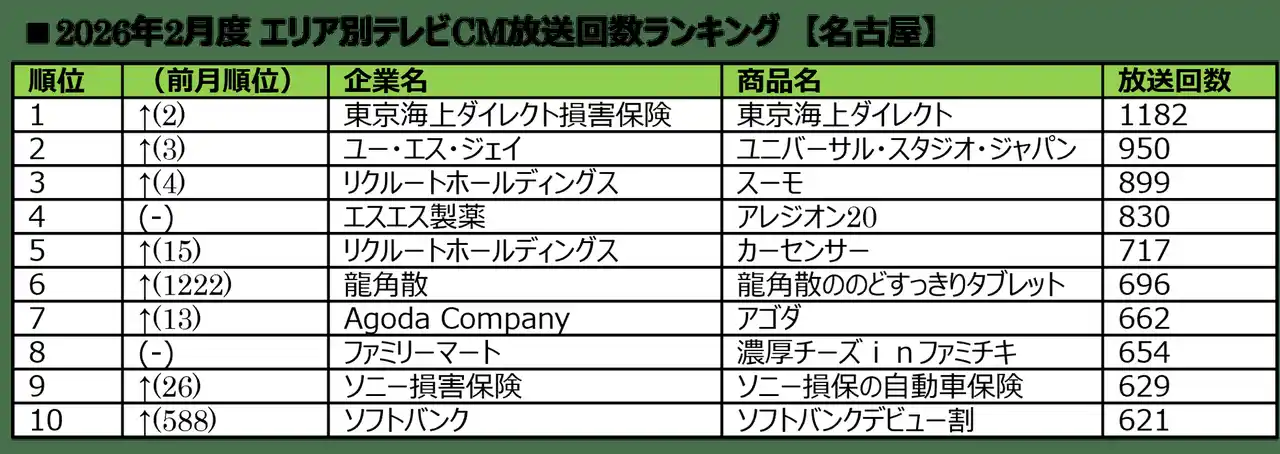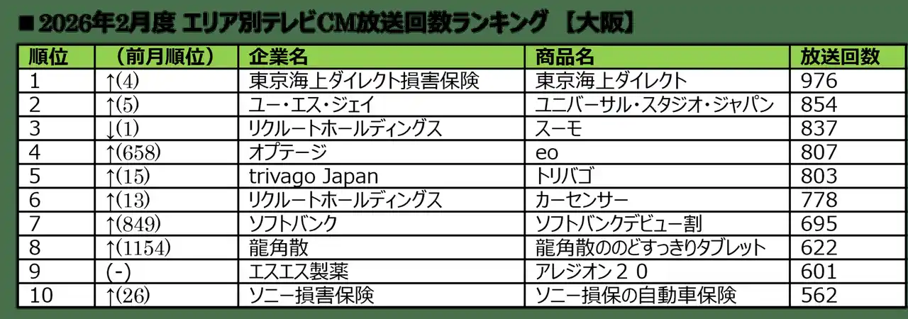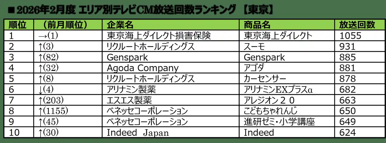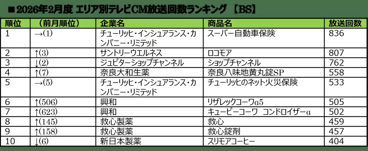 ■2026年2月度 エリア別テレビCM放送回数ランキング |