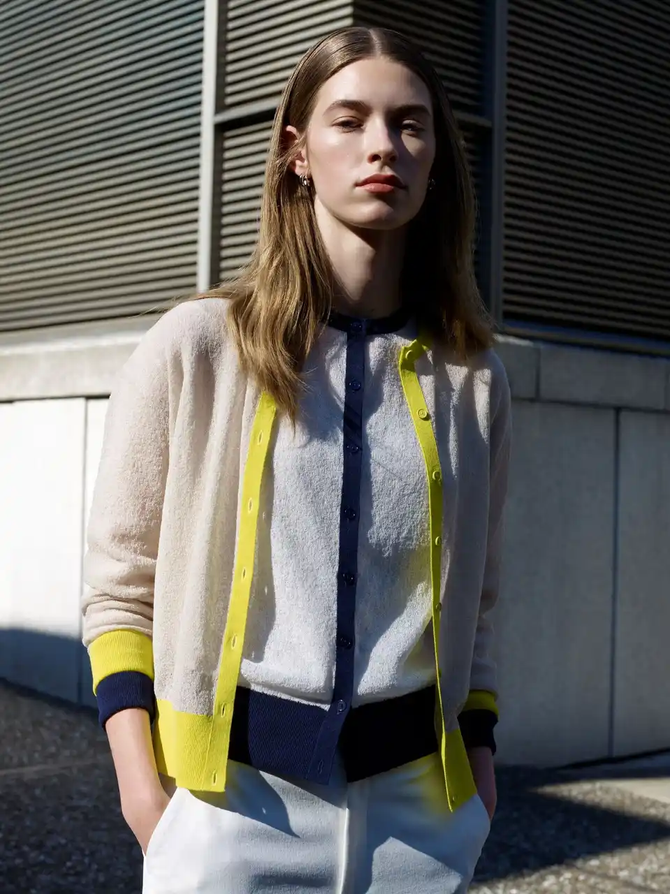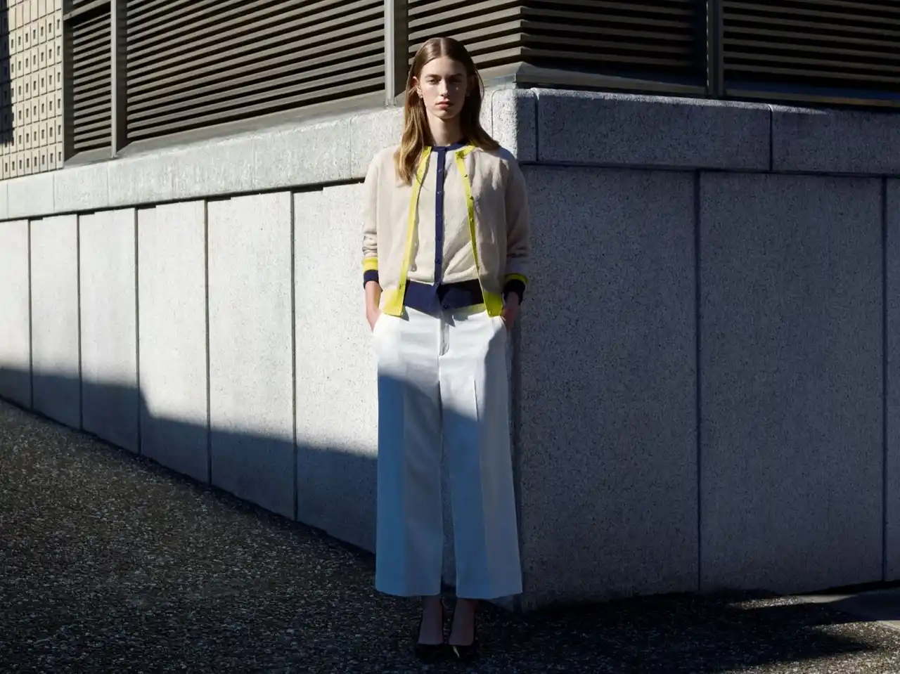 今季のコレクションでは、トピックカラーのイエローをアクセントにしたカーディガンをはじめ、ジャケットスタイルや柄物パンツなど、洗練された印象のアイテムが多数ラインアップ。 |