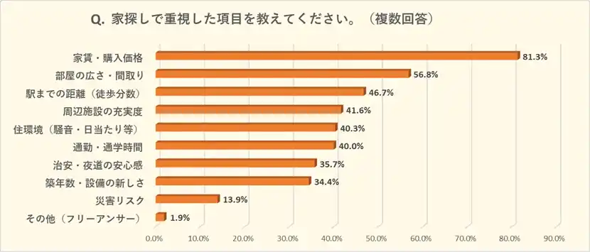 続いて、家探しで重視した項目についてお伺いしました。 |