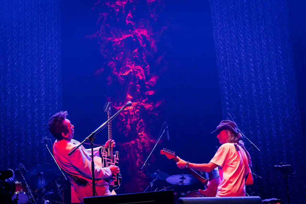 中でも、ライブ中盤に披露された“金子ノブアキ、KenKen&Char”によるJL&Cトリビュートは圧巻で、時空を超えて轟音のヘヴィ・グルーヴで鳴り響く「からまわり」は、今回のライブを象徴するようなドラマチックなワンシーンだと言えるだろう。観る者の涙を誘うKenKenの感動的なMCと合わせて、ぜひチェックしてほしいポイントだ。 |