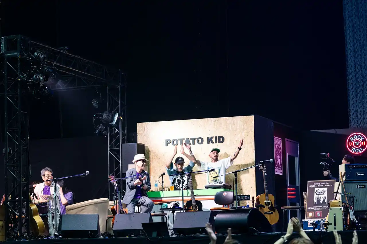 2025年7月4日(金)、記念すべきバースデイ・パーティの会場となったのは東京・日本武道館。ステージの下手には、大阪でライブを行なうミュージシャンたちが通い続ける老舗ダイニングバー『ポテトキッド(POTATO KID)』がサブステージとして出店しており、酒場に集った気の置けない仲間たちの演奏に導かれてCharが登場し、節目を祝う一夜限りの祝祭がスタートした。 |