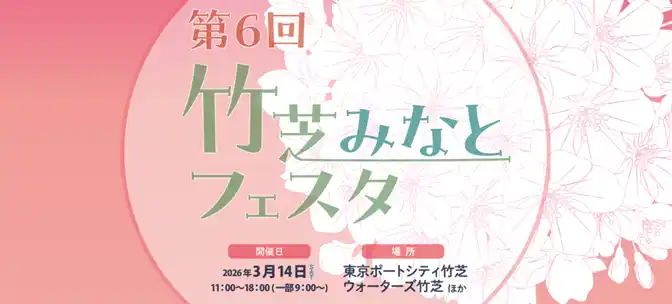 Minato協議会」(所在地:東京都港区、会長:港区芝地区総合支所長)を立ち上げ、竹芝地区での共創型まちづくりに取り組んでいます。この度、竹芝地区の魅力をより多くの方々に知っていただくため、3月14日(土)(※13日(金) 竹芝Marine-Gateway Minato協議会会員向けイベントとして一部開催)に「第6回竹芝みなとフェスタ」を開催することをお知らせいたします。 |