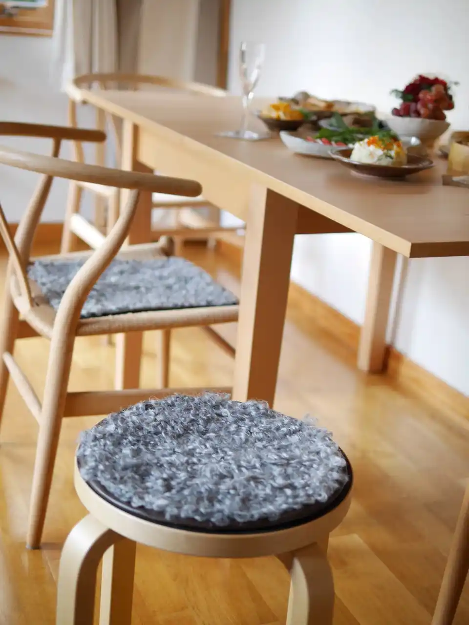 (ゴットランドシープスキン/径〈丸形〉・角〈四角形〉とも約33cm) |