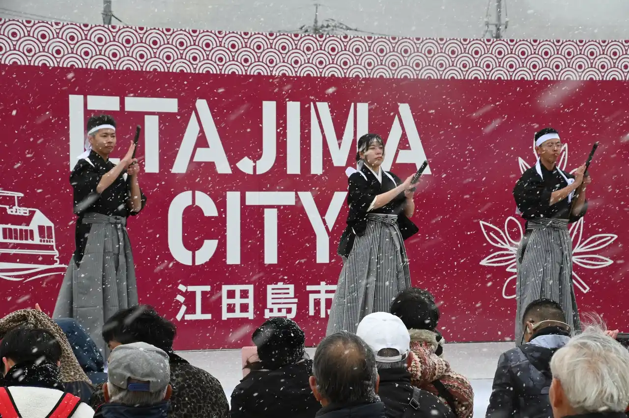 また、江田島市出身の三浦マイルドさんによるトークショーや、地元団体による和太鼓演奏や海上自衛隊幹部候補生学校による詩吟、ダンスのほか、柑橘品評会表彰式が執り行われるなど、多彩なプログラムが来場者を楽しませました! |