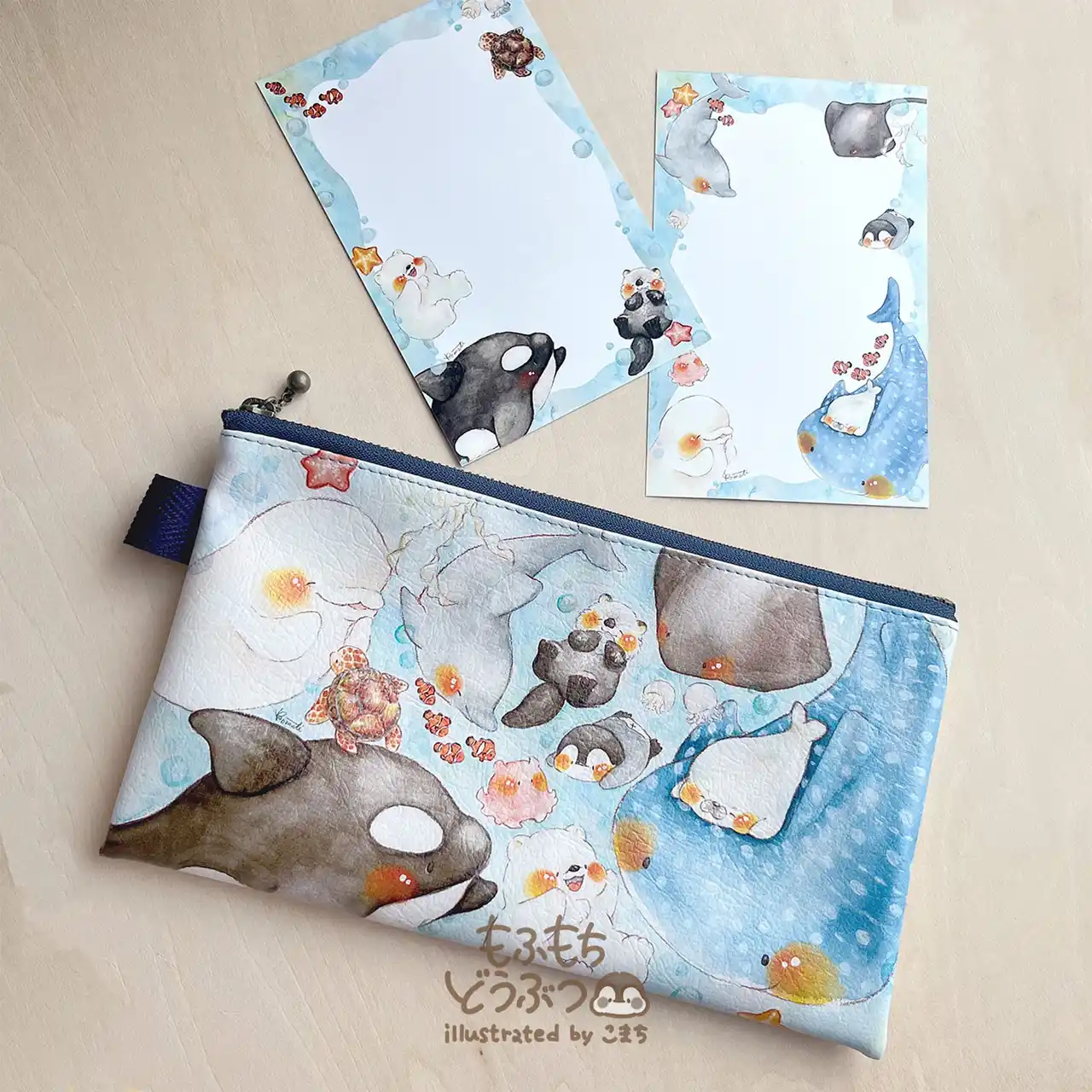 「可愛くてカラフルな海洋生物をもっと身近に」をコンセプトにイルカやクジラ、サメ、深海魚な ど、海で暮らすいきものたちをカラフルでやさしいタッチで描いています。 |