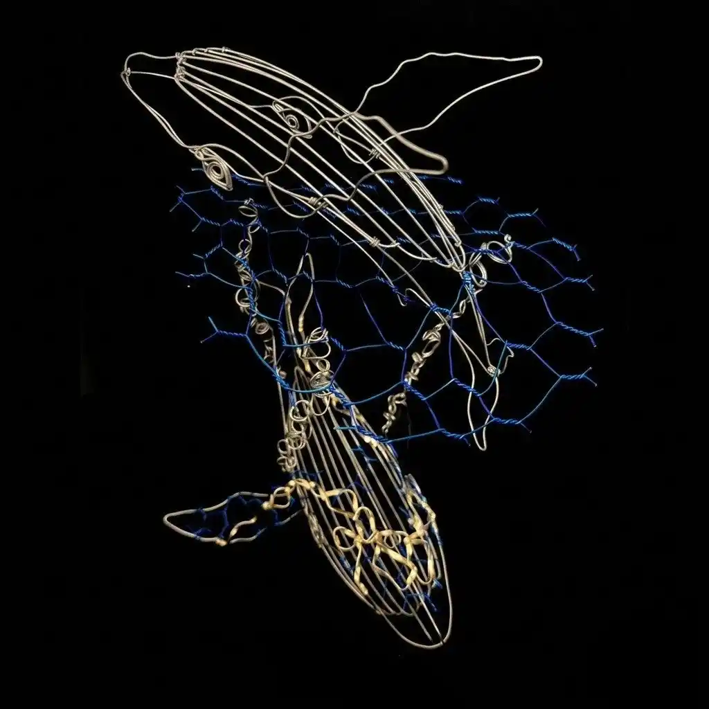 一本の針金を丁寧に曲げて、クジラや生き物の立体作品を制作しています。光を当てると針金の隙間から美しい影の線が浮かび上がり、作品がもう一つの表情を見せ始めます。光と影を針金の線が紡ぐ幻想的な世界を通じて、ささやかな感動をお届けできれば嬉しいです。 |