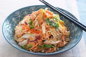 緑黄色野菜とチキンのキムチマヨ和えサラダ