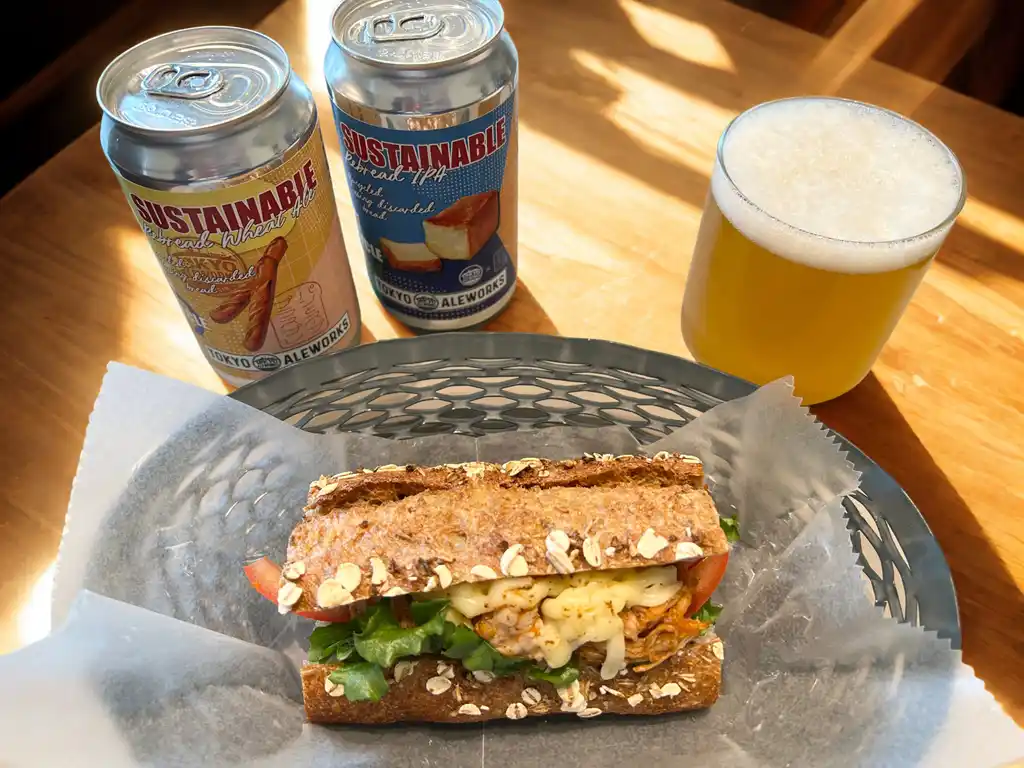ビール製造の過程で生まれる廃麦を生地に練り込んだバゲットを使用したサンドウィッチ。麦芽特有の香ばしさとほのかな甘み、食感を活かすため、粉末にせず素材の形を残して仕上げました。具材にはビールを使用したバーベキューソースとジューシーな豚肉を合わせ、チーズをトッピングして香ばしく焼き上げています。ビール由来の素材同士が調和し、食べ応えとビールとの相性を楽しめる一品です。 |