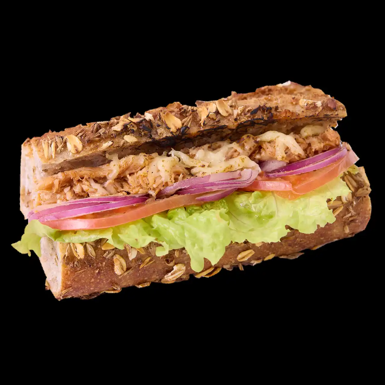 プルドポークと炙りチーズの麦芽粕入りバゲット (テイクアウト:1個 648円、イートイン: |