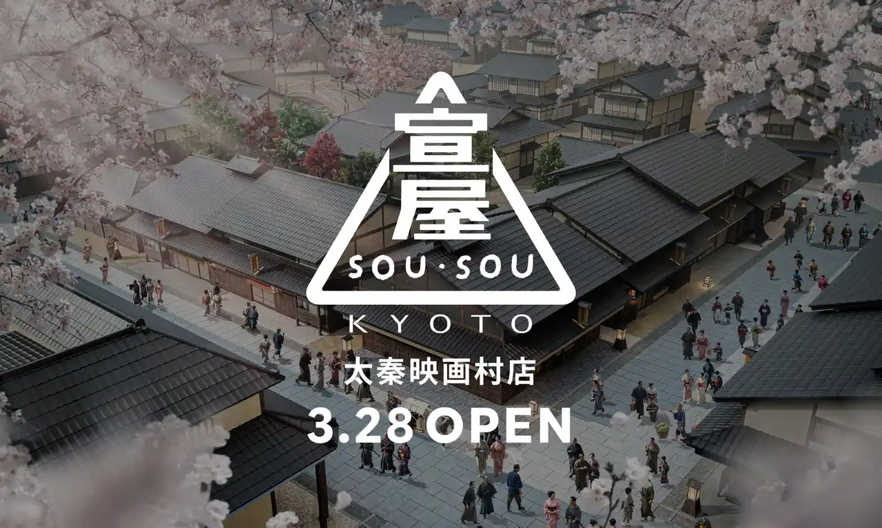京都発のテキスタイルブランド〈SOU・SOU〉(代表取締役:若林剛之)は、開業50周年を迎えた『東映太秦映画村』の全体リニューアルに伴い、新店舗「SOU・SOU 宣屋」をオープンいたします。「SOU・SOU 宣屋」では、プロモーションアイテムをはじめ、店舗限定アイテムや厳選アイテムを展開予定です。また、施設内の「扮装屋」にてSOU・SOUの和装レンタルを開始し、個性あふれる和装体験を提供いたします。同施設は2026年3月28日(土)に第1期リニューアルオープンを迎え、名称を『太秦映画村』へ変更。「江戸時代の京へ、迷い込む」をコンセプトに、大人も楽しめる没入型テーマパークとして生まれ変わります。 |