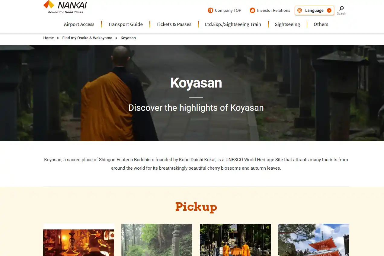 | 「大阪の見どころを発見する」「和歌山の隠れた魅力を見つける」「地元の絶品グルメを味わう」「自然や美しい景勝地を巡る」など旅の目的別に整理し、初めて訪れる旅行者でも使いやすいサイト構成としています。 | |||||||||