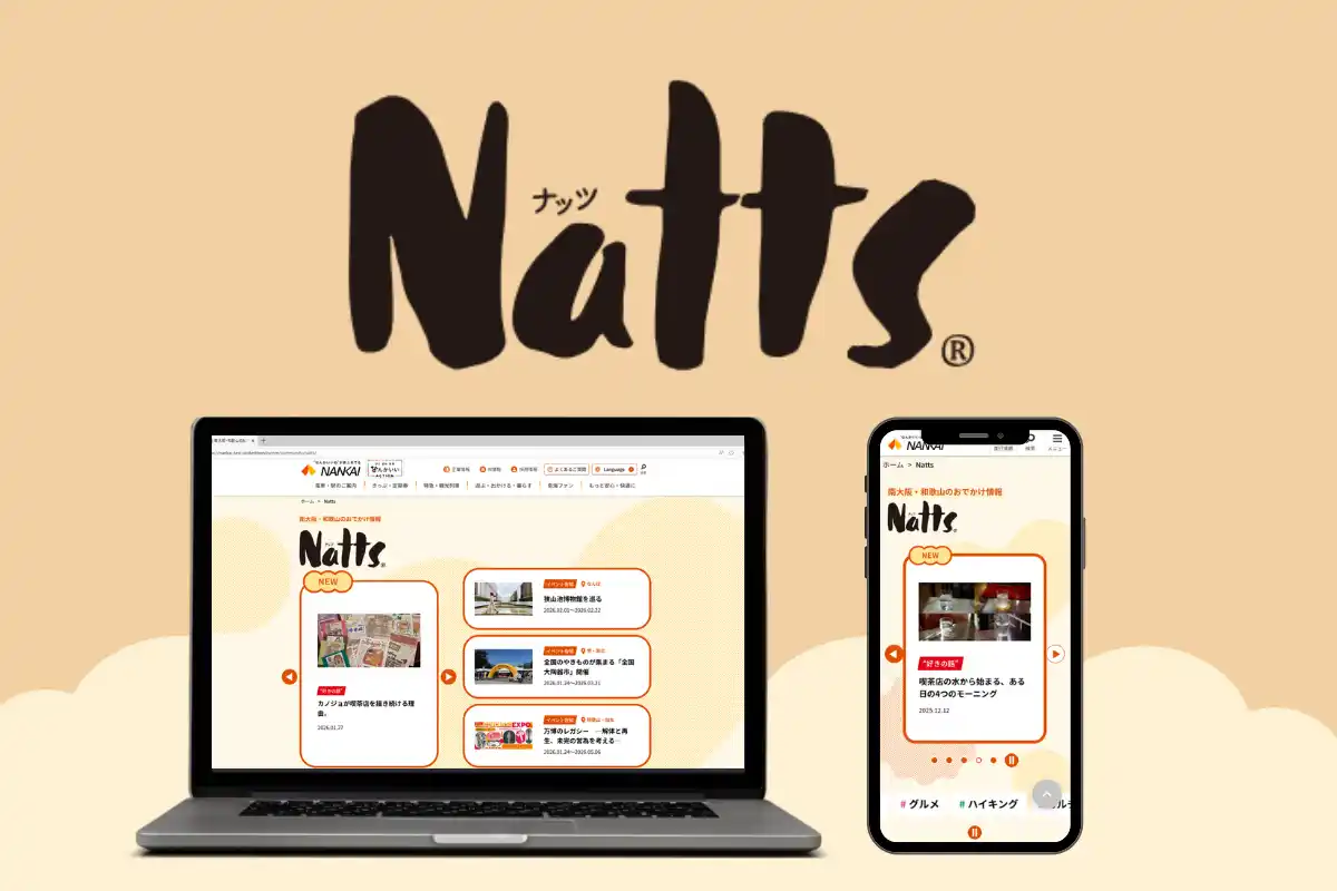 | 南海電気鉄道株式会社(本社:大阪市中央区)では、沿線のイベント・グルメ・観光情報を発信する新おでかけサイト「Natts(ナッツ)」を公開しました。 | |||||||||