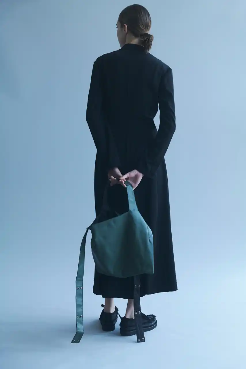 | 「INFINITE」は、スナップボタンで描かれたドットが特徴のバッグ。ボタンの留め方によってフォルムや見え方に変化が生まれ、装いにさりげないアクセントを添える。Y字の脇ハギによる遊び心ある構造を取り入れ、素材にはツヤ感のあるガーメントレザーと綿ツイルを使用。リバーシブル仕様で、その日のスタイルに合わせて異なる持ち方を楽しめる。 | |||