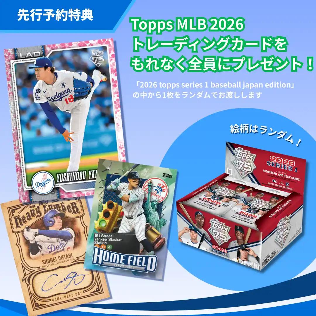 ・先行予約販売特典として、2026 Topps Series 1 Baseball Japan Editionトレーディングカードをもれなく1枚プレゼント。 |