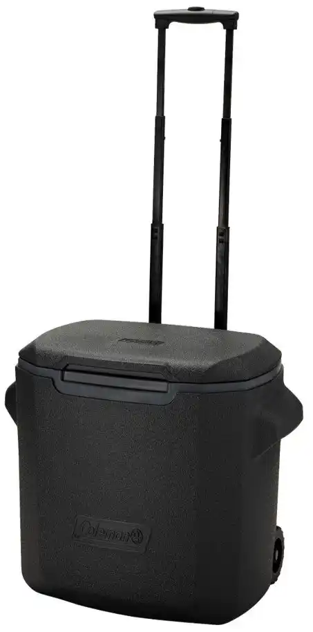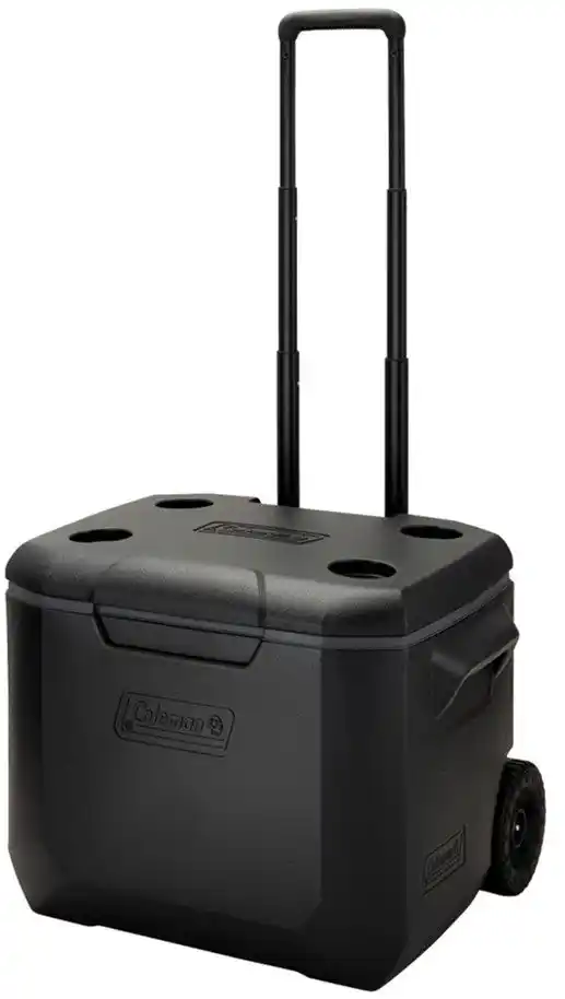 保冷力は約3日(※1)で、約56Lの大容量クーラーです。500mlペットボトルなら24本、1.5Lペットボトルなら13本、2Lペットボトルなら12本収納可能です(※2)。底面にはドレイン(水抜き栓)があるので、食材やドリンクを氷水に漬けて冷やした後も、簡単に水抜きができます。また、トップ部分にはカップホルダーが付いているためサイドテーブルとしても使用できます。伸縮性のあるハンドルとホイールで重い荷物も楽々移動ができるので、チームスポーツに最適なハードクーラーとなっています。 |