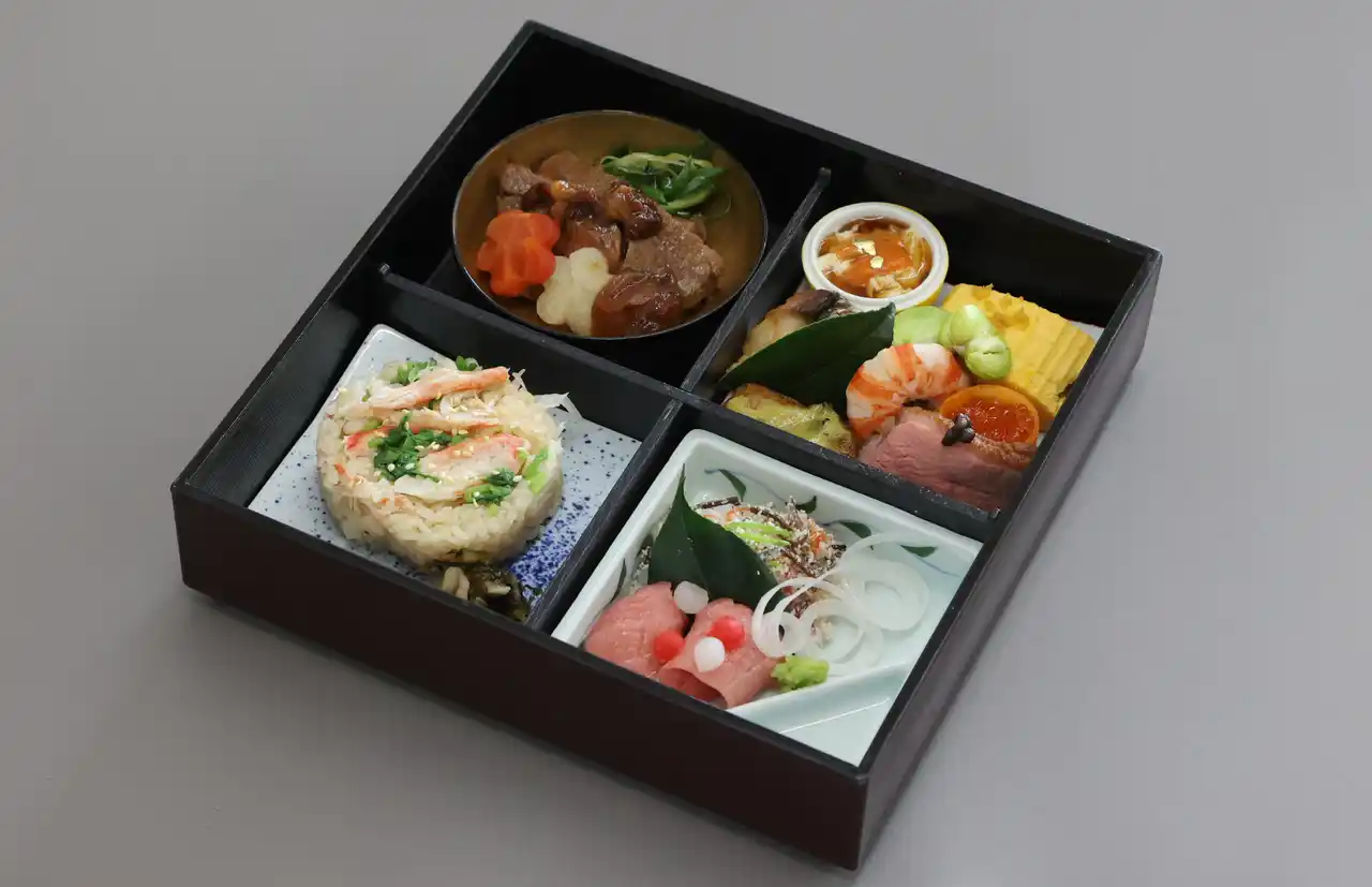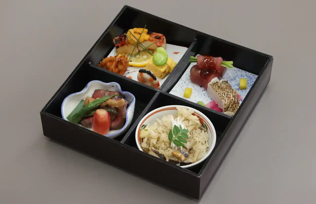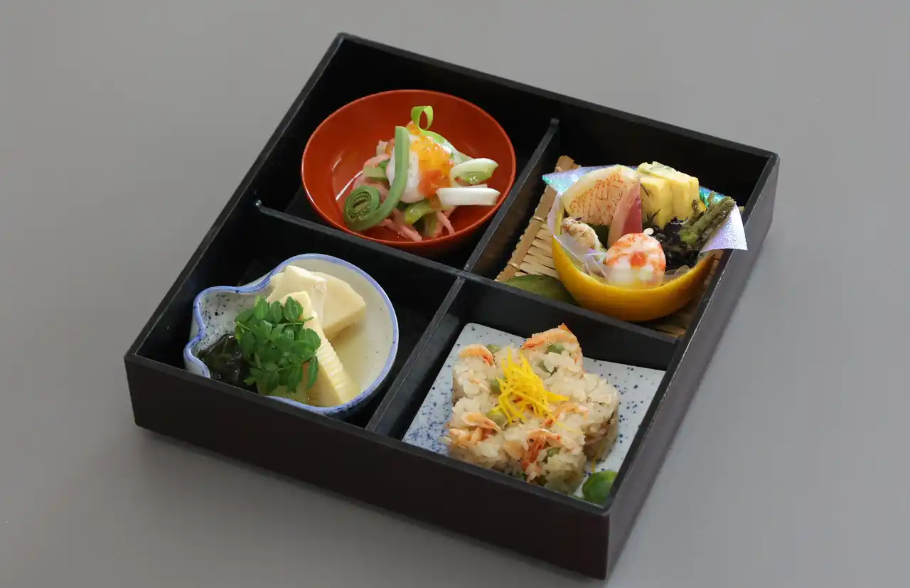 第6回となる今回は、グループホテルから選出された計7名の和食料理人が、「松花堂縁高弁当」を課題に、4ツ枡のうち1枡はご飯、残り3枡は和食の「五法(生、煮る、焼く、蒸す、揚げる)」を取り入れた料理を、それぞれ考案のうえコンテストに挑みました。 |