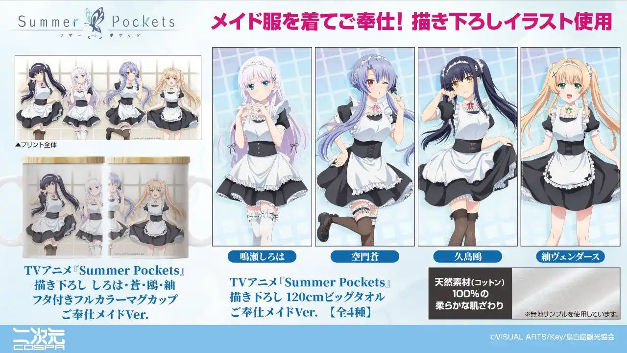 ■TVアニメ『Summer Pockets』 描き下ろし 120cmビッグタオル ご奉仕メイドVer. 全4種(鳴瀬しろは/空門蒼/久島鴎/紬ヴェンダース) |