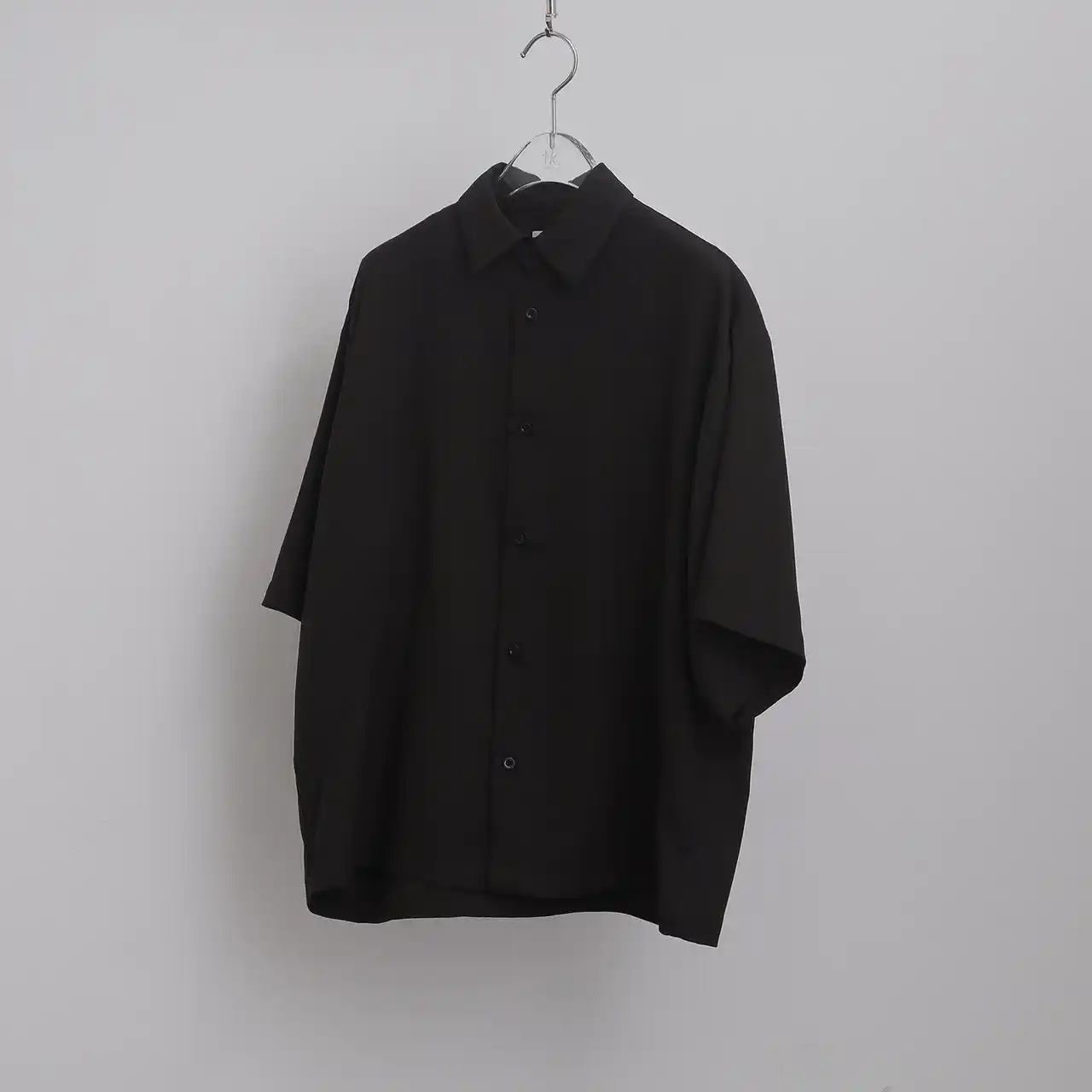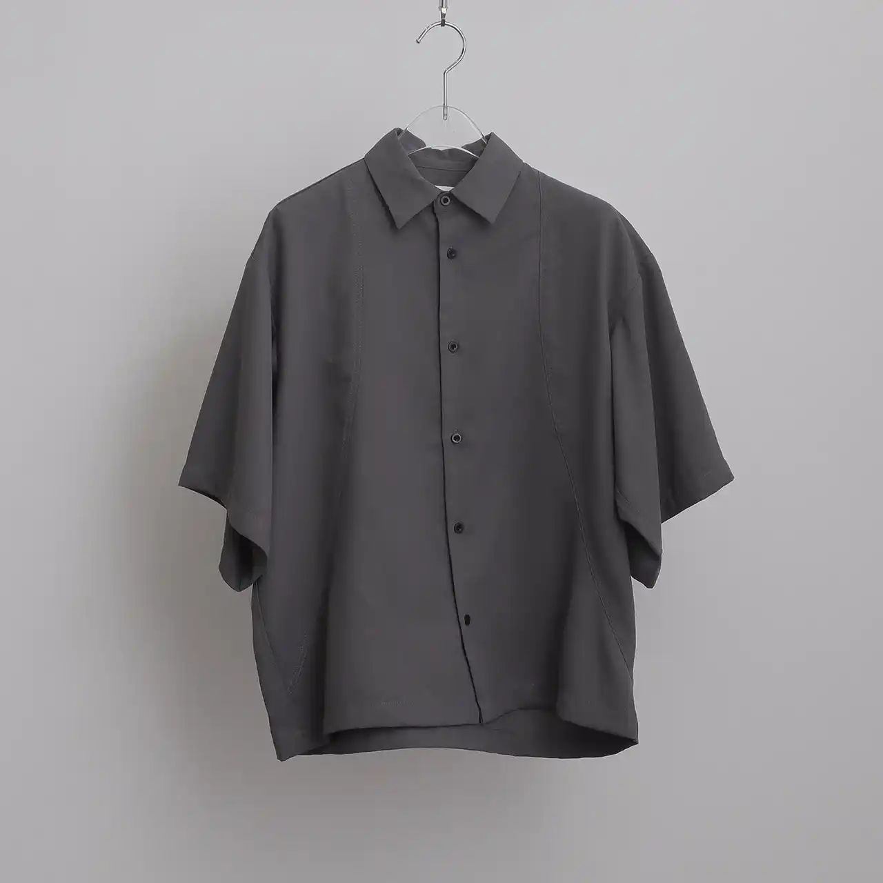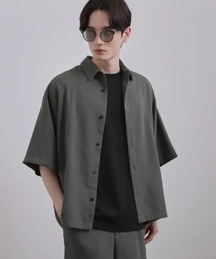 独創的なカッティングとミニマルなディテールが光るデザインシャツ。長袖シャツ同様に、肩を大きく落としたオーバーサイズシルエットが、リラックスしたこなれた雰囲気を演出します。 |