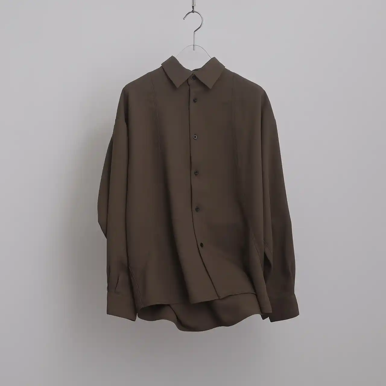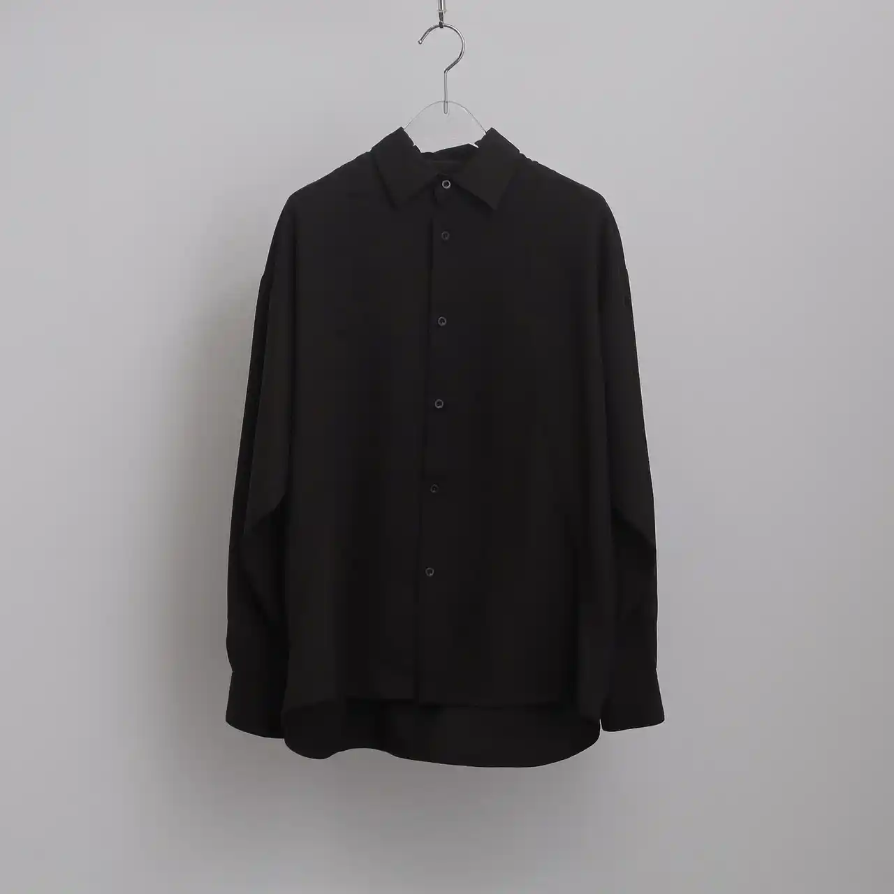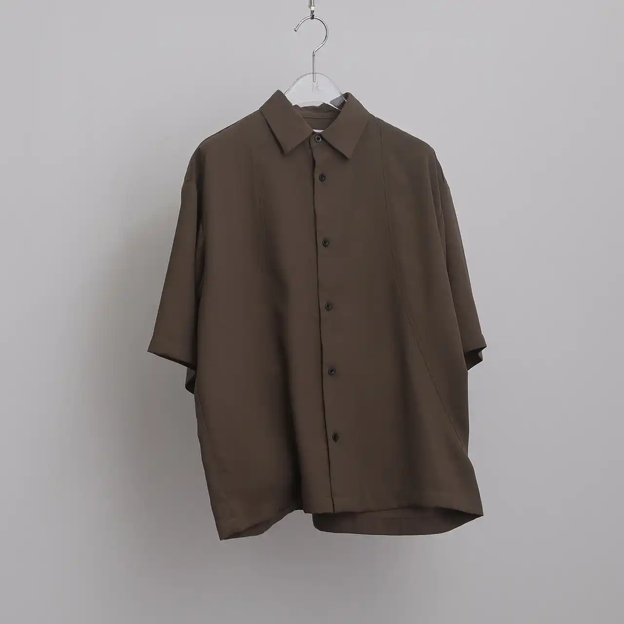 独創的なカッティングとミニマルなディテールが光るデザインシャツ。長袖シャツ同様に、肩を大きく落としたオーバーサイズシルエットが、リラックスしたこなれた雰囲気を演出します。 |