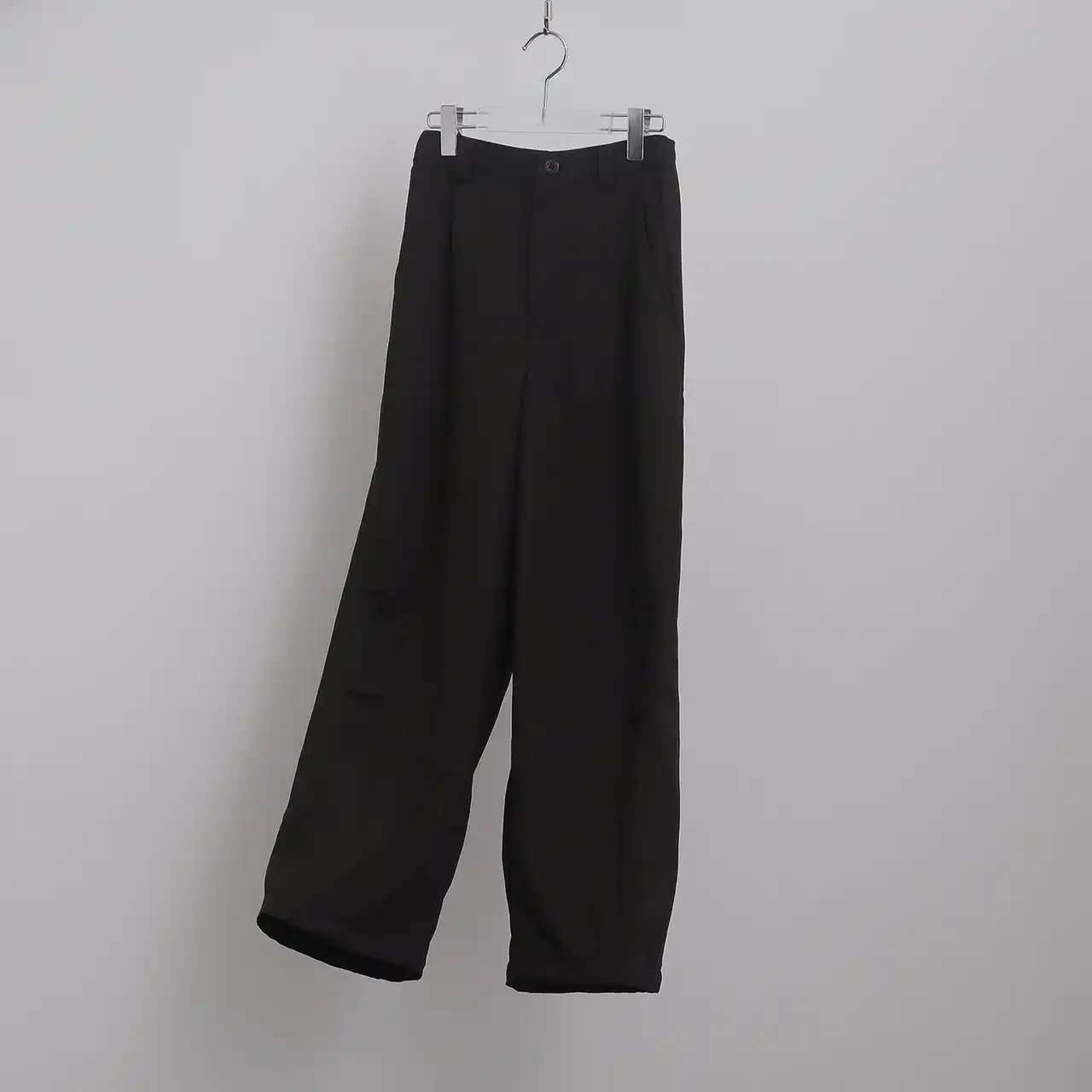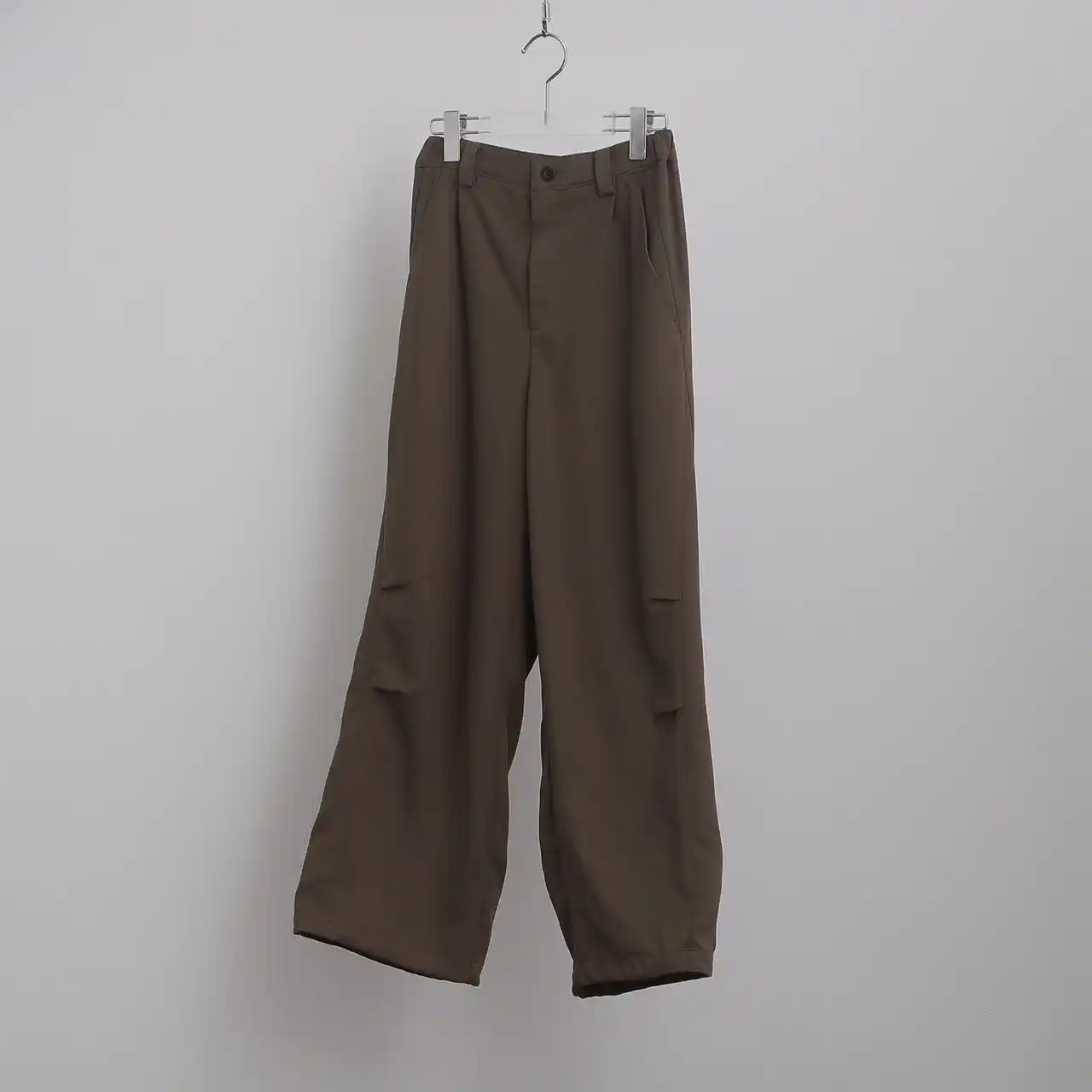 ミリタリーのパラシュートパンツをデザインソースに、独創的なカッティングでモードに昇華させたデザインパンツ。着用時に立体的なフォルムを生み出す計算されたパターンが、シンプルながらも確かな存在感を放ちます。 |