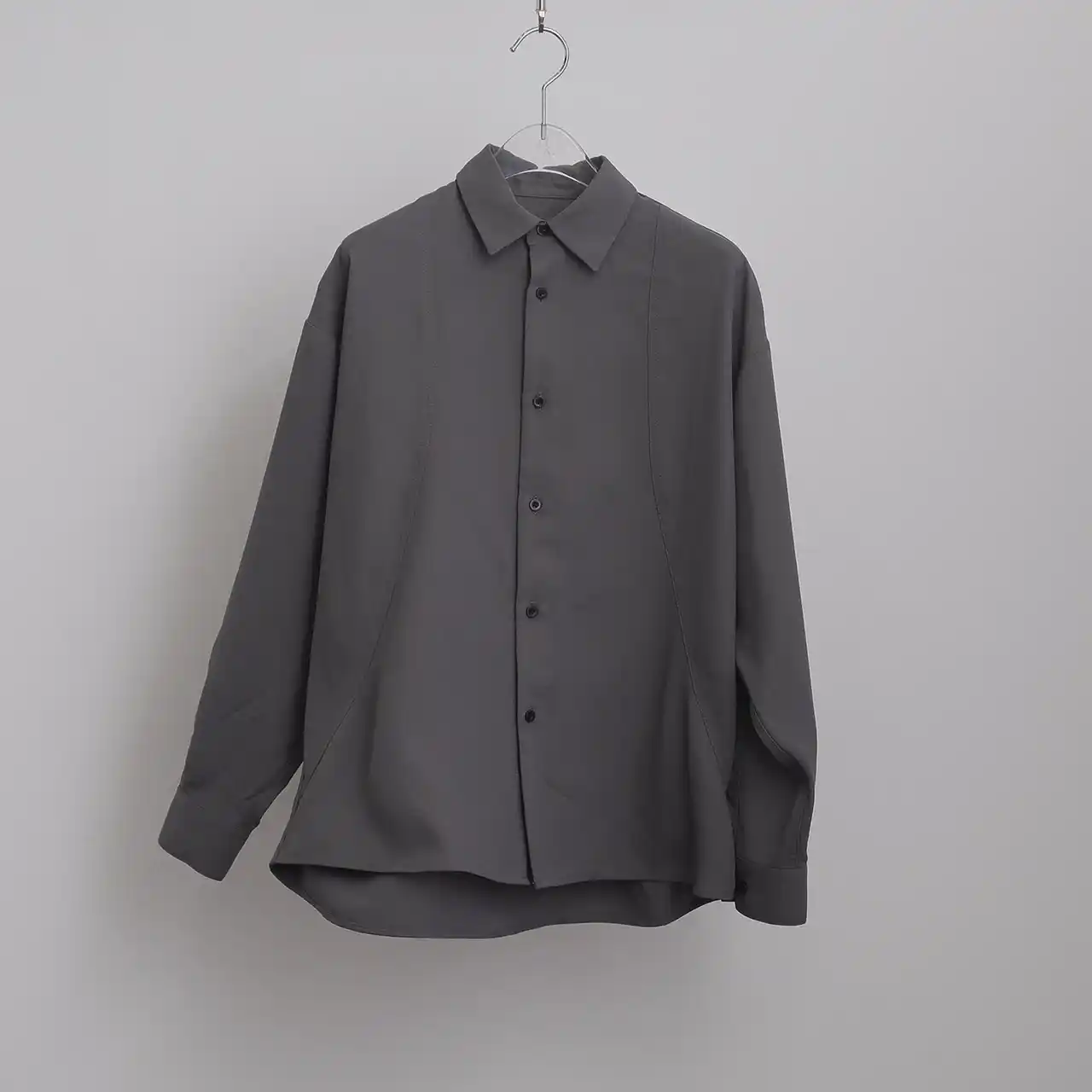 身頃に大胆に施した、曲線的なカッティング(カーブ切替)が目を惹くデザインシャツ。肩を大きく落としたオーバーサイズシルエットが、リラックスしたこなれた雰囲気を演出します。 |