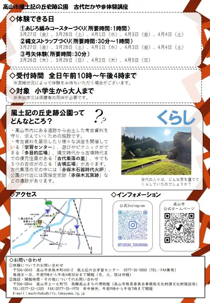 この春休みは古代の人々の人生に思いをはせながら、たかやまの古代博士を目指してみませんか? |