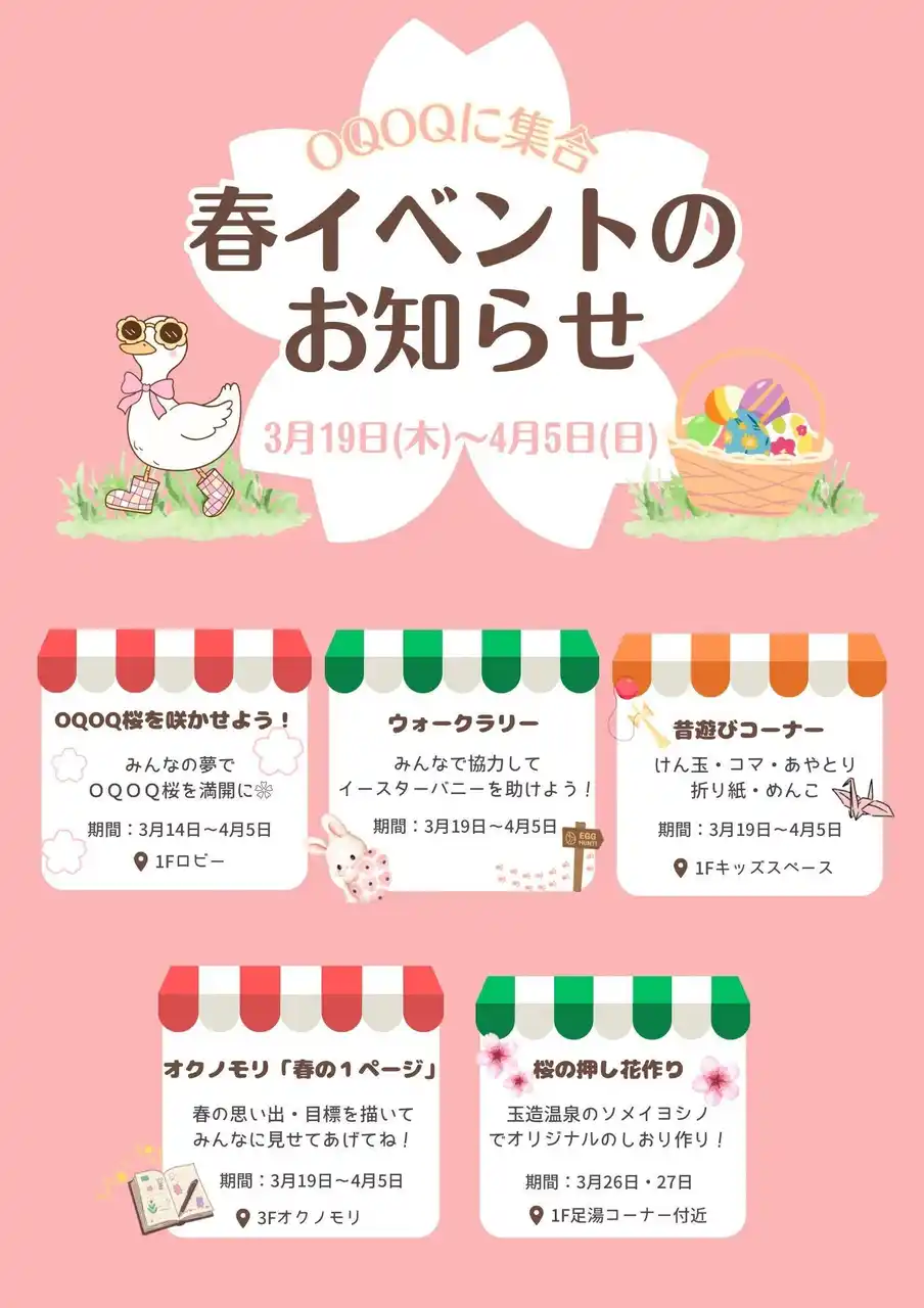 RYOKAN OQOQは、自分のペースで「癒し」と「遊び」を味わい、館内のあちこちで、さりげない“もうひとつの楽しみ”に出会えるご滞在を目指しています。この度、春を感じるイベントを開催いたします。 |