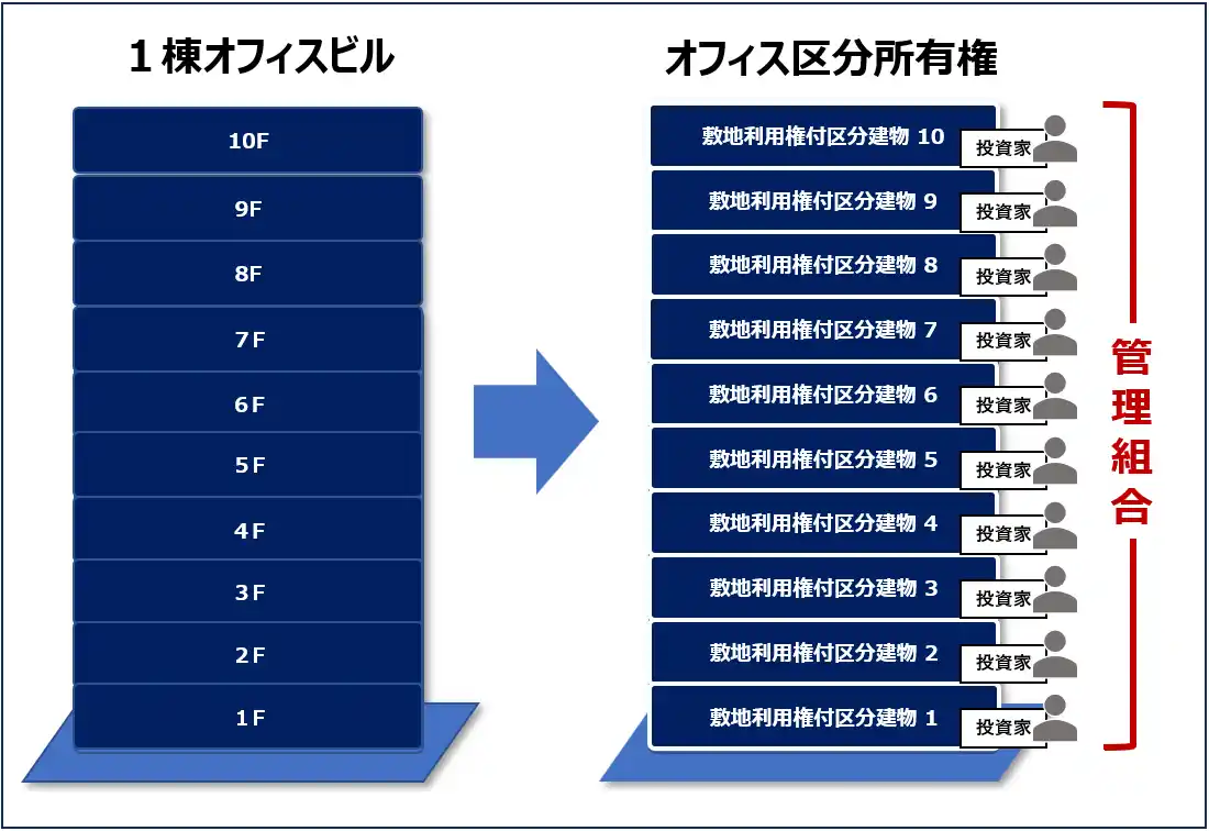 ビルをフロアごとに分割登記し、個別に販売する。 |