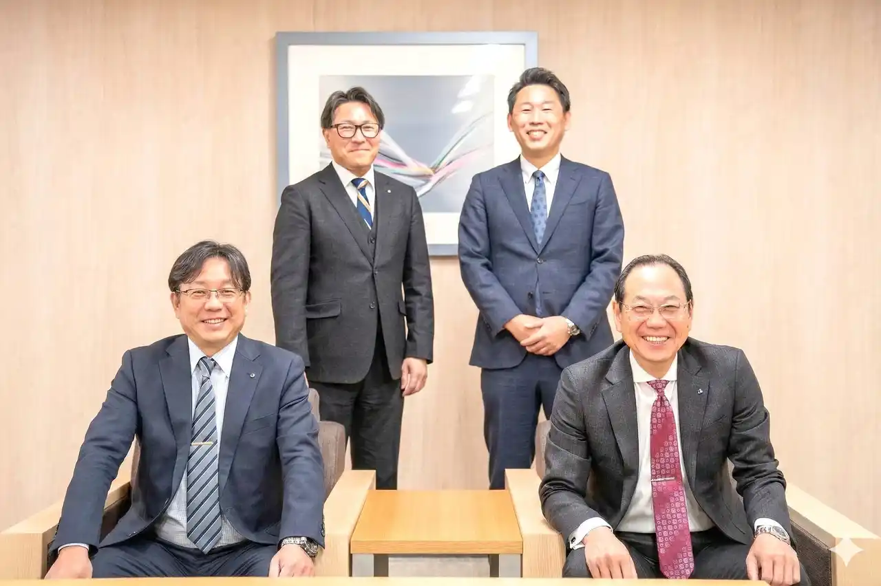 (写真左から) アジア航測 代表取締役社長 畠山 仁 同 取締役新規事業創造本部長 浦川 晋吾 (写真右から) アドソル日進 代表取締役社長 篠崎 俊明 同 執行役員デジタル・イノベーション事業部長 村上 佳史 |