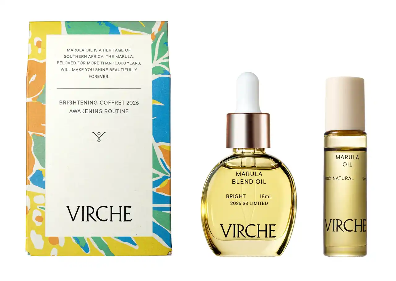 | 2026年の春のブライトニングコフレは限定香のマルラブレンドオイル[ブライト]18mLとロールオンタイプのマルラオイル9mLのセット。外箱は春に咲き誇る花をイメージした限定パッケージ。香りのコンセプトは”目覚めのシトラスハーバル”。オレンジの天然精油をメインにラベンダーやローズマリーをバランスよく配合。太陽の光をギュッと閉じ込めた明るい柑橘の香りが気分を明るく整えていきます。ロールオンタイプのマルラオイルはサッと気軽に持ち運びができ、日中でも手元や目元、口元の保湿に役立ち、またフェイスラインや首元のマッサージにも使えます。春の不安定な毎日を香りとうるおいで心地よく支える数量限定セットです。 | |||||||||||||