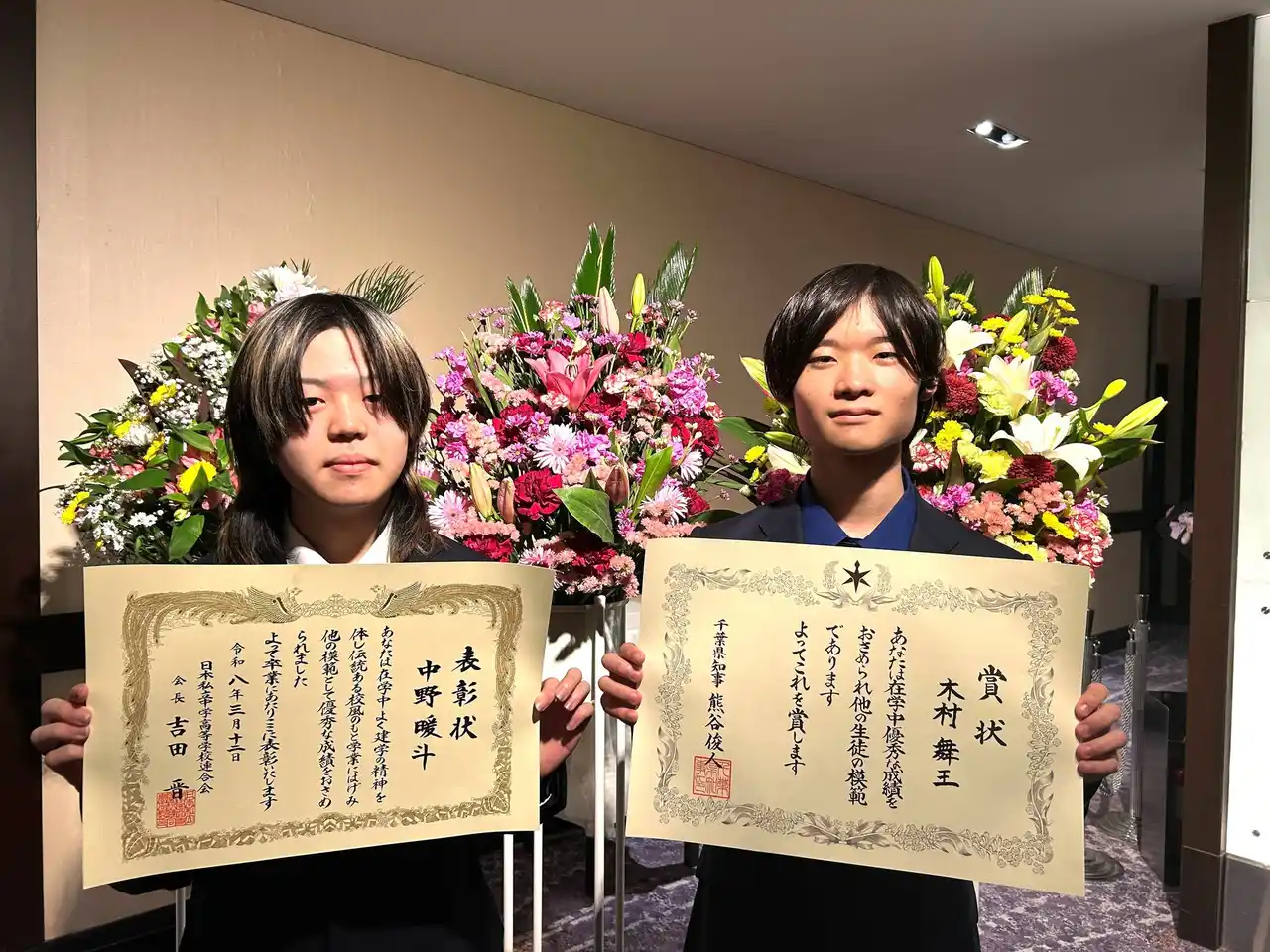 広域通信制高校・中央国際高等学校の生徒・木村舞王さんと中野暖斗さんがそれぞれ、「千葉県私立学校知事賞」と「千葉県私立中学高等学校優秀生徒表彰」を受賞。 2026年3月12日に挙行された「令和7年度 中央国際高等学校・中央高等学院・eスポーツ高等学院 卒業式」にて賞を授与されました。 |