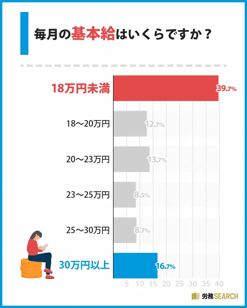 | ● 基本給18万円未満が約4割、月給制における内訳確認の重要性 | ||||||||||||||