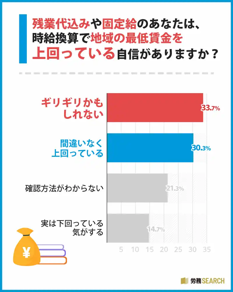 | ● 最低賃金を確実に上回っていると自信を持つ人は3割程度 | ||||||||||||||