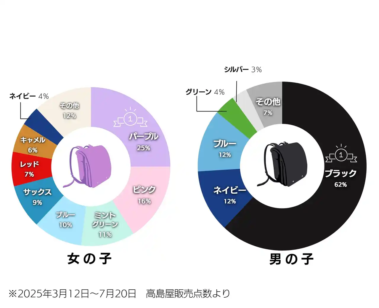 ランドセルの人気カラー (2026年度入学向け・高島屋販売点数より) |