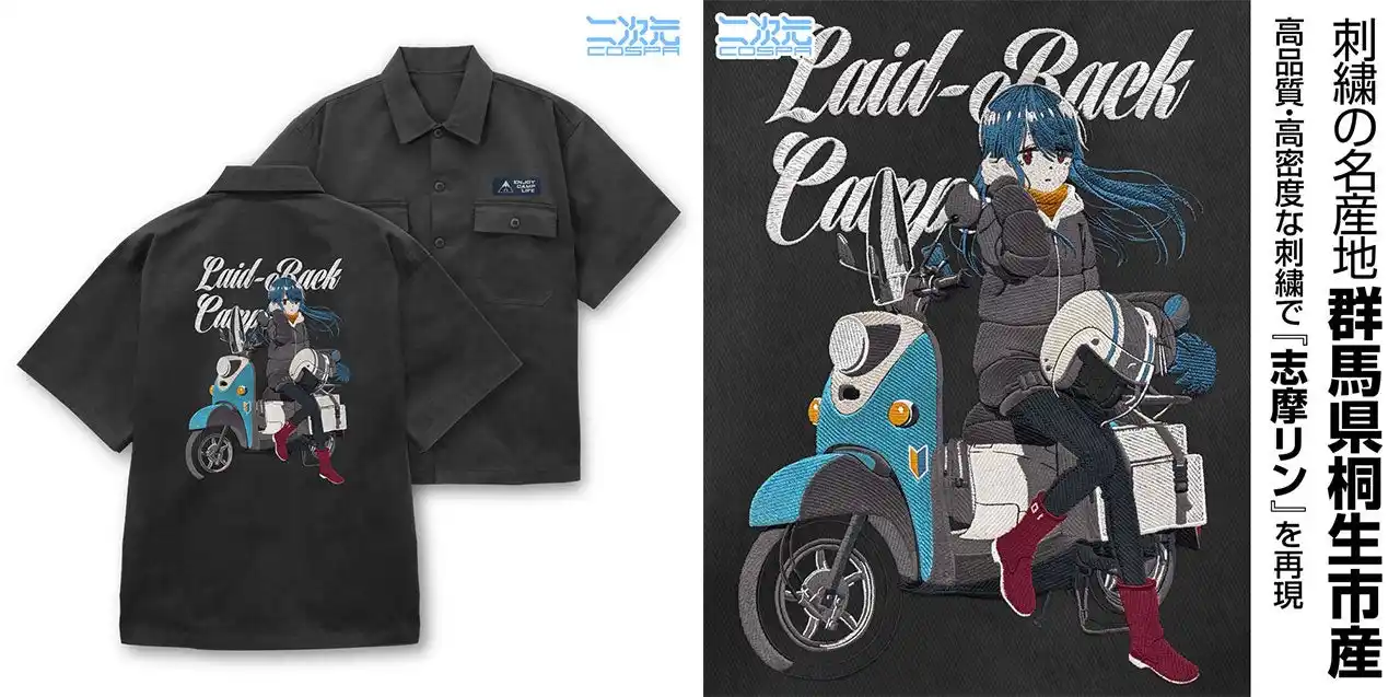 『ゆるキャン△ SEASON3』より、国産高密度刺繍の圧倒的存在感で”志摩リン”の姿を表現した工芸品を身に纏う満足感が味わえる一着「描き下ろし 志摩リン 刺繍ワークシャツ バイクでひといきVer.」をはじめ、「シルエットバイク志摩リン ドライTシャツ」や「カリブー ミニショルダーポーチ」など新グッズが二次元コスパから登場です。 |