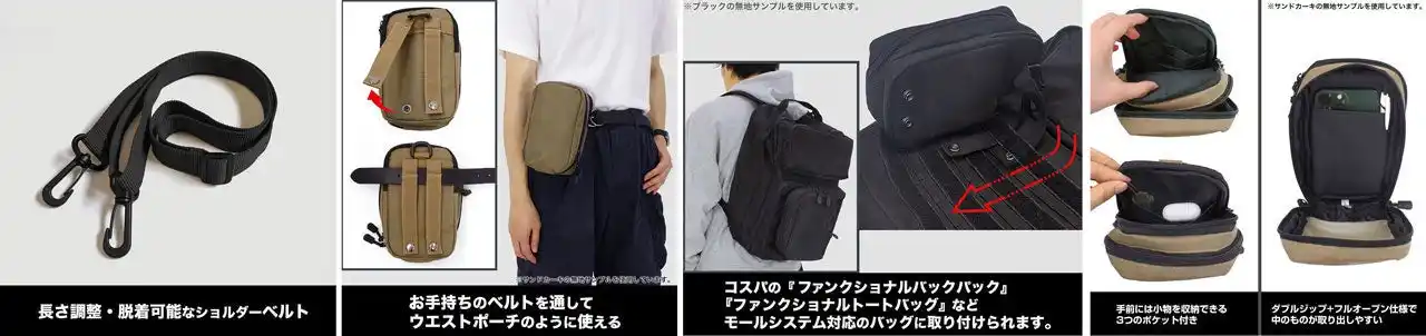 ・コスパのファンクショナルバックパック、ファンクショナルトートバッグなどモールシステム対応のバッグに取り付けられます。 |
