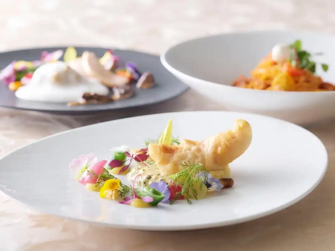 メイン料理(A~Cより1品チョイス) A【生パスタ】熊本県産カラフルトマトと塩豚のラグー リコッタチーズ添え B【魚料理】カサゴのベニエ グリビッシュソース 佐賀県産ホワイトアスパラガスのローストを添えて C【肉料理】国産若鶏のフリカッセ ヴァンジョーヌソース モリーユ茸の香り |