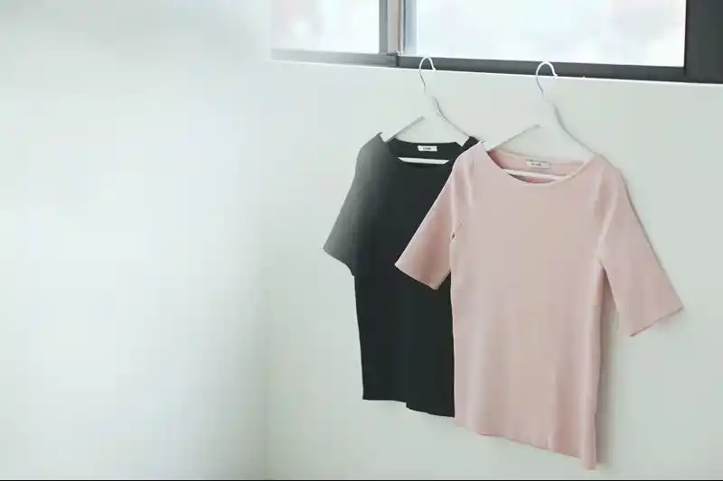 身体のラインを拾いにくい柔らかなリブと、肘までくる5分袖が大人の体型に優しい |