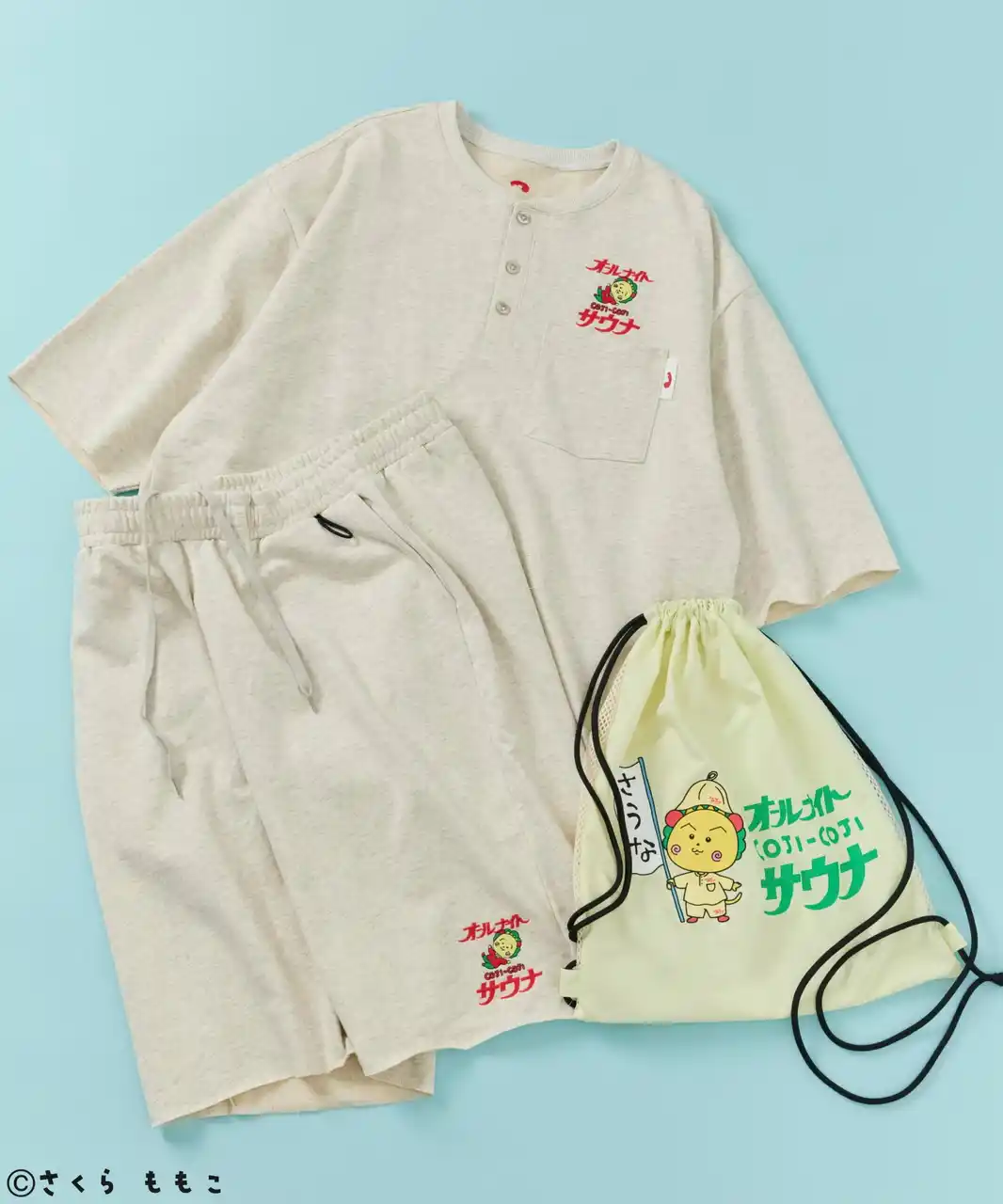 アイテムはスーパー銭湯などで見られる館内着(かんないぎ)をイメージしたセットアップをはじめ、銭湯通いから普段使いまで活躍するメッシュバッグ付きのタオルセットをラインアップ。 |