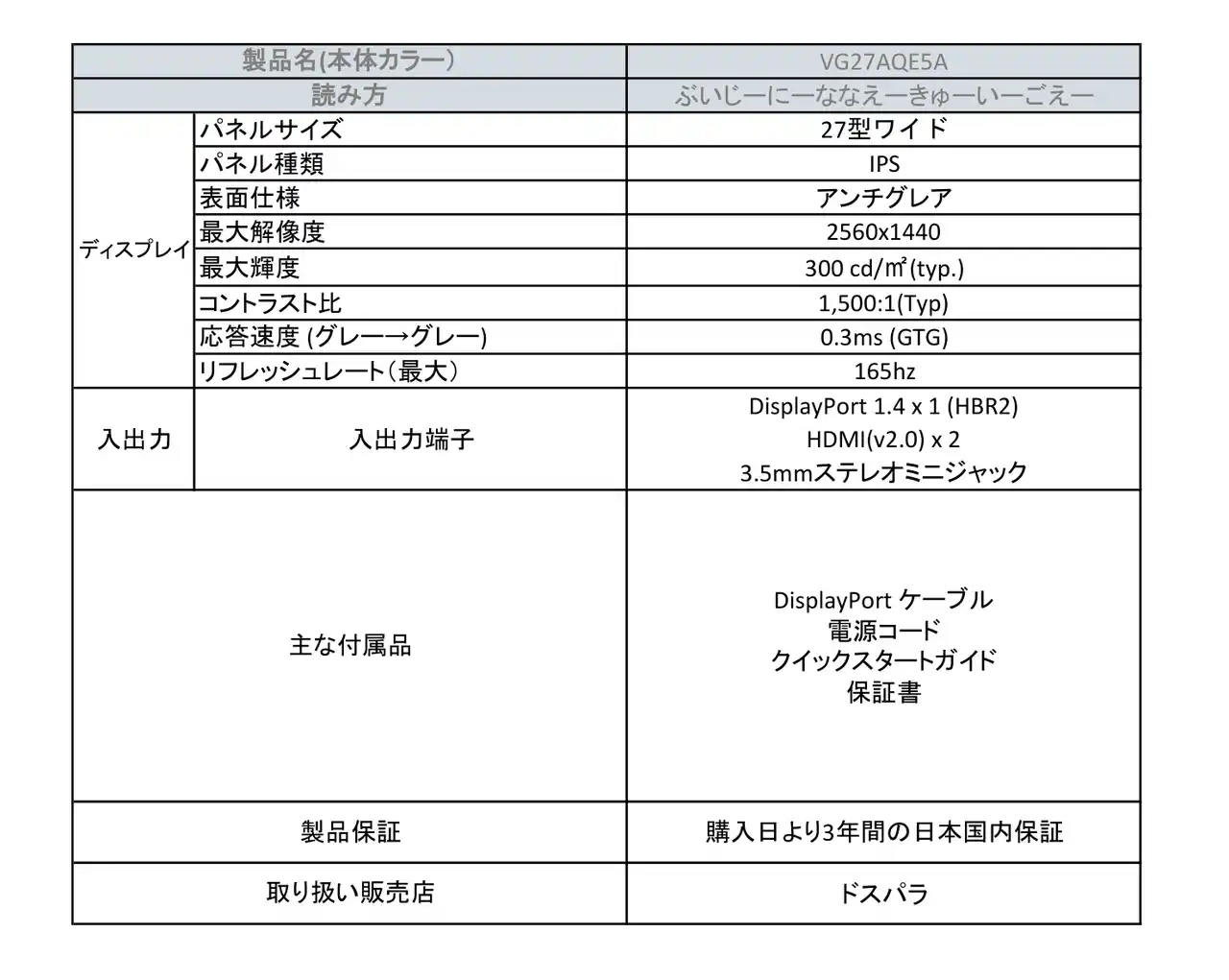 | 製品詳細:https://www.asus.com/jp/displays-desktops/monitors/tuf-gaming/tuf-gaming-vg27aqe5a/ | |||||||||||||||
