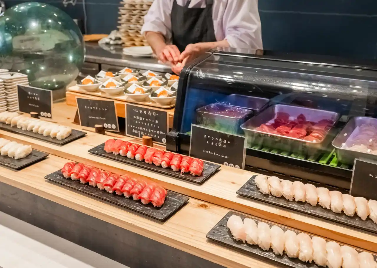 本鮪、カニ、サケいくらをはじめ、 ツブ・ニシン・サヨリ・ヤリイカ・赤貝・ブリ・エビなど海の幸を彩り豊かに取り揃えました。 通常のブッフェに加えて楽しめるこの春だけの特別なお寿司。 異動や入学などの行事も落ち着く4月は、ご家族や大切な方とのお祝い旅にもおすすめの季節です。 |