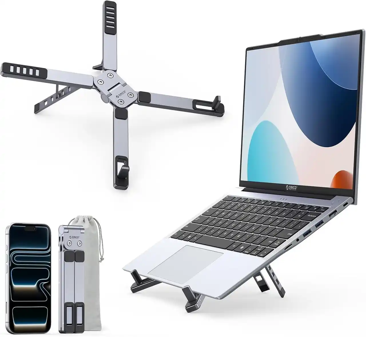 3-in-1折りたたみ設計でコンパクトに収納でき、持ち運びも簡単。 テレワークやカフェ作業、出張など、さまざまなシーンで活躍する便利なPCスタンドです。 |