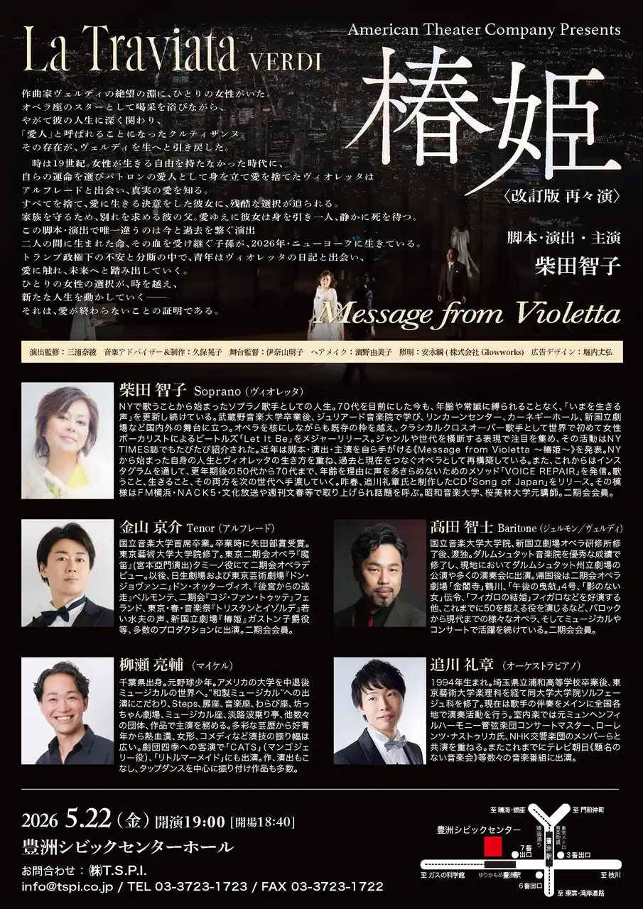 手がける《Message from Violetta ~椿姫~》を発表。NYから始まった自身の人生とヴィオレッタの生き方を重ね、過去と現在をつなぐオペラとして再構築している。また、これからはインス |